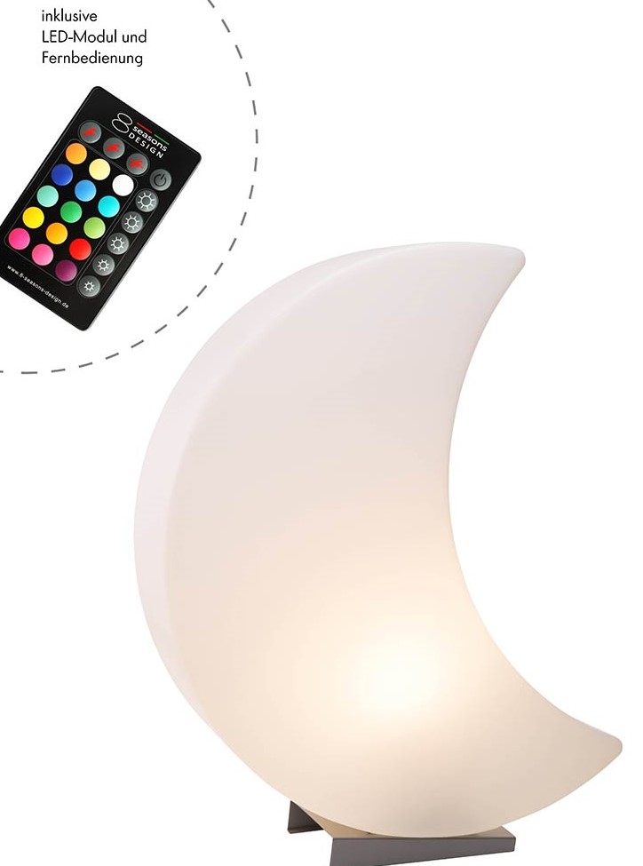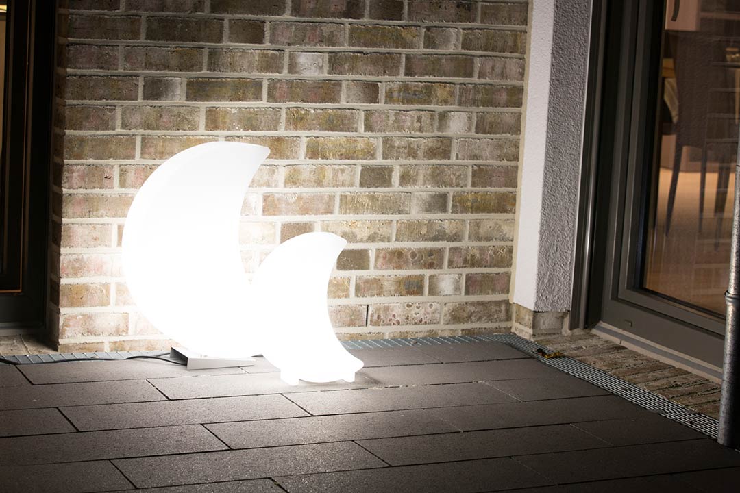 Unsere weiße Mondleuchte Garten 60cm beleuchtet Ihren Außenbereich sanft und beschaulich. Ob im Schnee etwas versunken oder auch an lauen Sommernächten, die Designerleuchte aus unserer Leuchtenserie La Lune verzaubert Ihre Außenanlagen mit einem weißen oder auch farbigen Licht. Die qualitativ hochwertige Motivleuchte ist von den Maßen 60 cm hoch und 40 cm breit sowie 14,5 cm tief. Die stilvolle Gartenleuchte setzt mit ihrem schlicht klassischem und zugleich modernen Design überall in der Dunkelheit anmutend Lichtakzente. Ob als Bodendekoration, Beetbeleuchtung, Rasen-Highlight oder winterliche Terrassenbeleuchtung, die moderne Winter-Gartenleuchte lässt sich auch prima mit anderen LED-Figuren als Beleuchtung und Dekoration kombinieren.