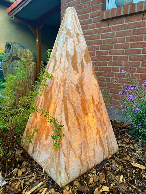 Die exklusive Gartenleuchte in Pyramidenform wird inklusive 5 Meter Zuleitung mit einem Konturenstecker geliefert. Die exklusive Gartenbeleuchtung wurde in der Kategorie Qualität und Design bereits mit dem Plus X Award ausgezeichnet. Die Gartenbeleuchtung in Pyramidenform wird auf Anfrage gern auch mit Akku (W-WW 4,5 Watt und mit Funkfernbedienung) geliefert. Kombiniert mit den 2 größeren Pyramidenleuchten der Serie Dubai ist die Leuchte ein echter Blickfang, besonders abends bei Beleuchtung. Schauen Sie dafür gern unter dem Link Pyramiden-Aussenleuchte Dubai 54.