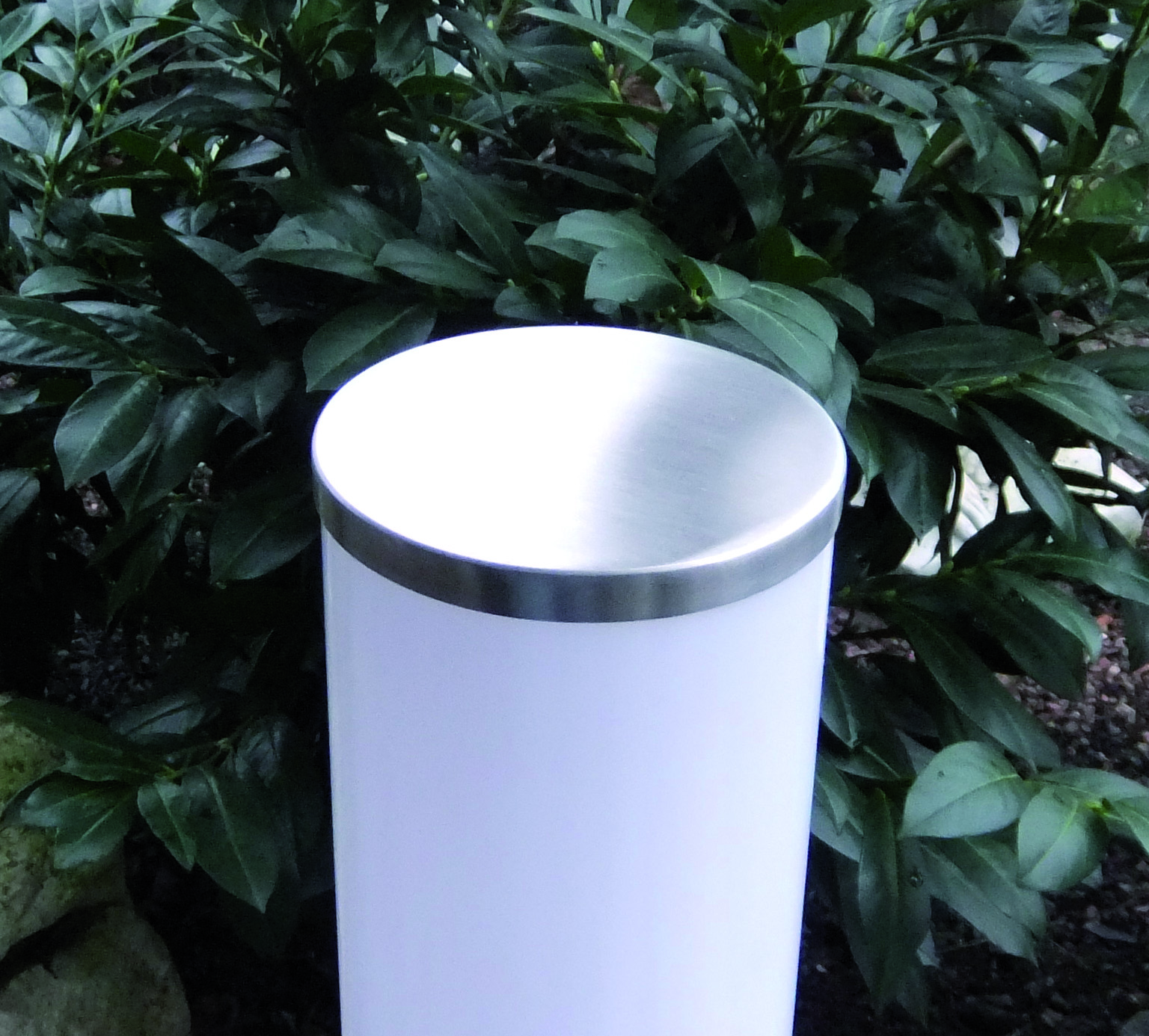 Die im Design moderne und wetterfeste Sockelleuchte Gastro wird aus hochwertigem reinweißem Kunststoff und Edelstahl hergestellt. Der Sockelfuß besteht aus eloxiertem Aluminium. Die schlagfeste Oberfläche ist immun gegen UV-bedingte Vergilbung und Versprödung. Damit ist die als Außenleuchte und als Innenleuchte einsetzbare Säulenleuchte optimal für eine lange Lebensdauer ausgelegt. Die Sockelleuchte Gastro entspricht der Schutzklasse IP 45 und ist damit gegen allseitiges Spritzwasser mit erhöhtem Druck bestens geschützt. Die rundförmige Außenleuchte ist hochwertig verarbeitet und mit einer Höhe von 29 cm das kleinste Leuchtenmodell unserer Leuchtenserie Gastro. Die Sockelleuchte Gastro spendet ein blendfreies und ungerichtetes Licht. Die kleine Sockellampe aus unserer Leuchtenserie Gastro ist für die Beleuchtung von Flächen und Wegen in öffentlichen sowie auch privaten Bereichen geeignet und wird auch gern als Lichtpunkt in den Gartenanlagen genutzt. Der Durchmesser der hochwertigen Außenleuchte beträgt 10 Zentimeter. Die E 27-Fassung der Außenleuchte ist für Leuchtmittel (Glühlampen, Energiesparlampen und LED-Leuchtmittel) bis 40 Watt geeignet. Leuchtmittel sind bei Lieferung nicht enthalten.