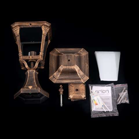 Die im Design klassisch-antike Sockelleuchte für Restaurant verleiht Ihrem Hauseingangsbereich oder Ihrer Terrasse ein nostalgisches Flair. Postieren sie die dekorative Vintage-Aussenleuchte auf Treppenabsätzen, auf Mauern, anderen Podesten oder auch ebenerdig, wo mehr Licht gewünscht ist. Die antik-messingfarbene Sockellampe im Vintage Schmiededesign ist Teil unserer Außenleuchtenserie Bregenz. Die stilvolle Außenleuchte ist von ihren Maßen 57 cm hoch und 23 cm breit bzw. tief. Die viereckige Laterne wird von einem stilvoll sechsseitigen Sockelfuß getragen, der sich in der Form nach oben hin verjüngt. Feine Zierelemente und eine kannelierte Montur runden das antike Design ab. Eine einbrennlackierte, handgewischte Patinafarbe veredelt den langlebigen Siluminguss, der besonders korrosionsbeständig ist und verleiht ihr ein antikes Aussehen. Die dekorative Sockelleuchte für Restaurant ist mit weiß satiniertem Echtglas versehen. Dank des verarbeiteten satinierten Echtglases erzeugt die Sockelleuchte für Restaurant ein absolut blendfreies Licht, welches seitlich in vier Richtungen abgestrahlt wird. Satiniertes Glas schützt vor Blendeffekten und ermöglicht damit eine hohe Flexibilität bei der Wahl des bevorzugten Leuchtmittels. Denn auch LED Lichtpunkte werden durch den Diffusor als homogenes Licht wahrgenommen und eignen sich perfekt für die Beleuchtung ihrer Außenflächen. Für eine besondere Lichtatmosphäre sorgt auch die Möglichkeit des Dimmens, die Ihren Außenbereich in der gewünschten Lichtintensität erstrahlen lässt. (Phasenanschnittsdimmer erforderlich). Bis zu 60 Watt Leistung sind hier mit einer E 27-Fassung möglich. Je nach Bestimmungsort und Erforderlichkeit wählen Sie die für Sie passenden Leuchtmittel. Ob LED-Leuchtmittel oder auch Energiesparlampe, ob warmweißes Licht für eine stimmungsvolle Beleuchtung oder lieber eher kaltweißes Licht (höhere Kelvinzahl) für mehr Helligkeit, Sie bestimmen mit der Leuchtmittelwahl die Lichtwirkung Ihrer neuen Außenbeleuchtung. Leuchtmittel sind bei der Lieferung daher nicht enthalten. Mit der vom Hersteller angegeben Schutzart IP 23 empfehlen wir den Einsatz eher für etwas geschütztere Außenbereiche.