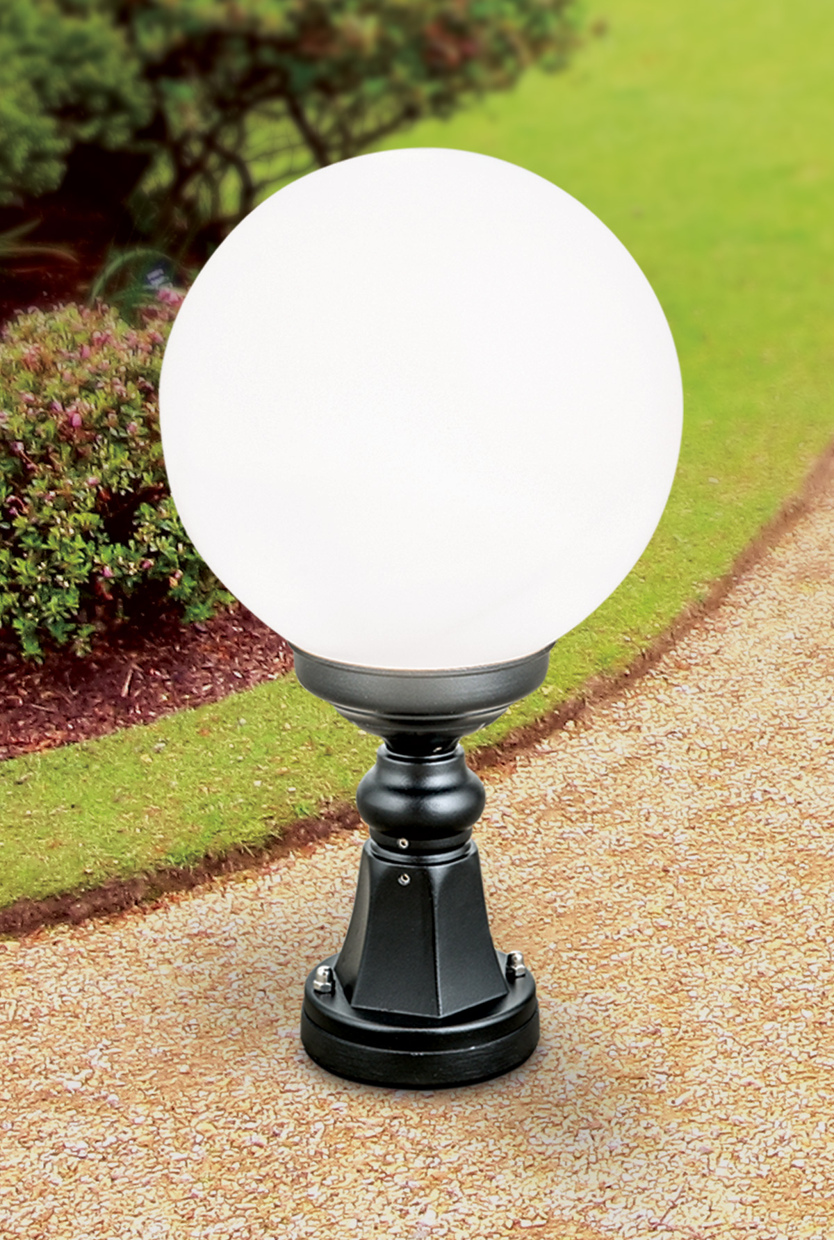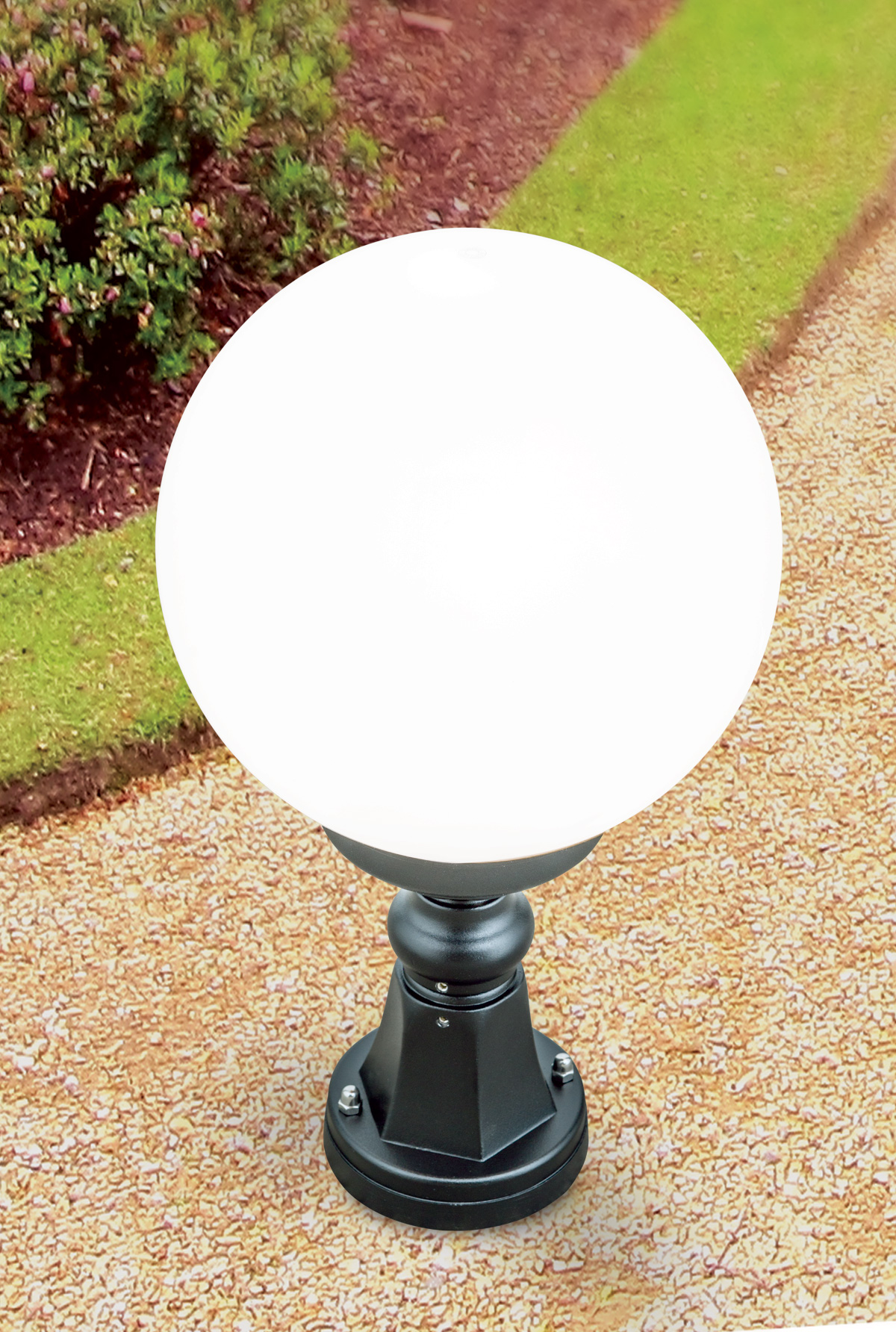 Unsere Sockelleuchte klassisch 44cm überzeugt optisch mit einer klassisch weißen Kugelhaube und dem dazu farblich dekorativ im Kontrast stehenden dunklen Sockelfuß. Die Einsatzmöglichkeiten der rundförmigen Gartenleuchte sind vielfältig. Die Außenleuchte Modell Salzburg eignet sich als Wegeleuchte, als Außenbeleuchtung für Podeste, Mauerabsätze, Treppenabsätze oder auch sehr gut als romantische Terrassenbeleuchtung. Setzen Sie mit der Kugel-Sockellampe Salzburg geschmackvolle Lichtakzente in Ihrem Außenbereich.
