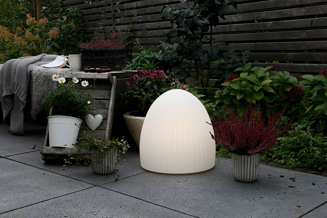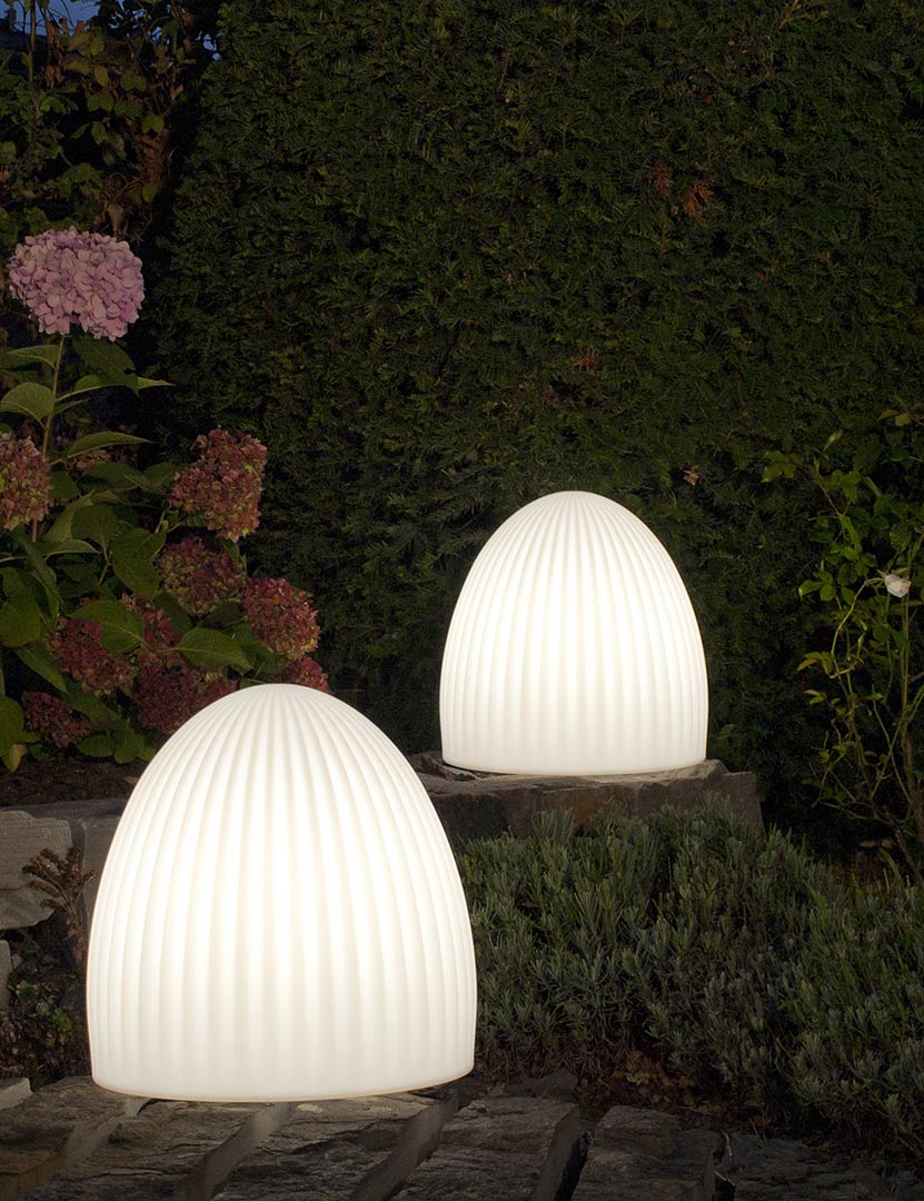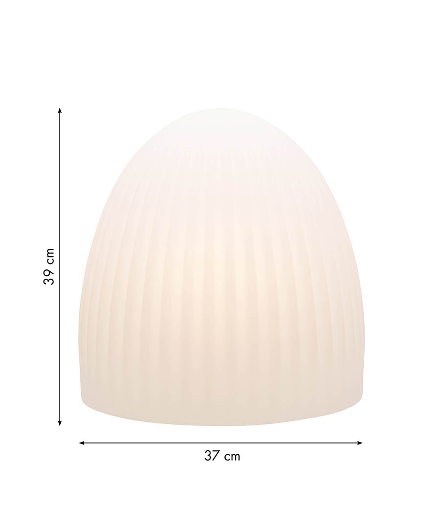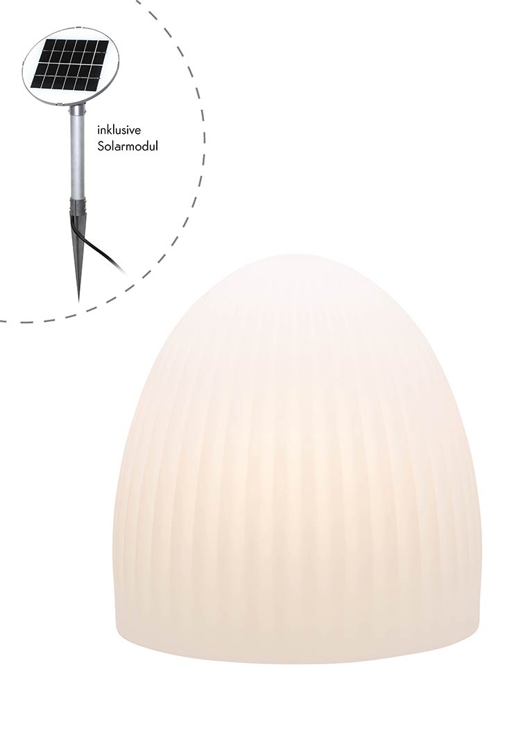 Unsere moderne Solar Bodenleuchte Modell Paros lässt sich im Außenbereich mit einer Lichthelligkeit von 800 Lumen gut als Terrassenbeleuchtung oder Vorgartenbeleuchtung integrieren. Mit der authentischen und durchaus zeitlosen Form ist die weiße Gartenleuchte sehr gut ganzjährig als warmweiße Lichtquelle draußen einsetzbar. Auch als Gartenbeleuchtung an Wegesrändern oder in den Beetanlagen ist die optisch leichtgerillte Außenleuchte schön anzuschauen. Die Leuchte wirkt besonders dekorativ inmitte von Pflanzen oder anderen Dekorationsartikeln. Dank der hochwertigen Solartechnik lässt sich die Solar Bodenleuchte Paros ohne Aufwand und tägliches manuelles Ein-und Ausschalten bedienen. Ganz ohne Stromanschluß und lästige Verlängerungskabel kann die dekorative Bodenleuchte je nach Bedarf auch einfach mal umgesetzt werden. Damit lassen sich auch vom Haus entferntere Standorte und Ecken stimmungsvoll beleuchten. Die wetterfeste Solar Bodenleuchte unserer Leuchtenserie Paros misst in der Höhe 39 cm. Der Durchmesser beträgt 37 cm. Das Gewicht der Leuchte beträgt 2,7 kg. Die hohe Belastbarkeit entsteht durch die Herstellung aus hochwertigem Polyethylen. Das macht die weiße steinförmige Außenbeleuchtung robust gegenüber Sonne, Regenwetter oder Frost. Die Außenbeleuchtung Paros unterliegt während der Produktion ständigen Qualitätskontrollen. Der deutsche Hersteller liefert mit einer 24-monatigen Herstellergarantie ab Werk. Die dekorative Gartenbeleuchtung ist mit der Schutzart IP 44 gut spritzwassergeschützt und natürlich regenresistent.