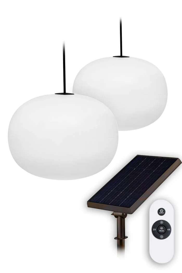 Fazit: Mit der Solar Hängeleuchte Garten im praktischen 2er-Set bringen Sie stilvolle und flexible Beleuchtung in Ihren Garten und Außenbereich. Die weißen Kugelleuchten sind über ein 200 cm langes Kabel miteinander verbunden und lassen sich dank integrierter Ösen mühelos an Haken, Pergola-Konstruktionen oder Ästen befestigen – ideal für jeden Outdoor-Bereich oder auch als Baumbeleuchtung perfekt nutzbar. Die Steuerung erfolgt bei den Kugelleuchten bequem per Fernbedienung: Stellen Sie die Helligkeit stufenlos ein, aktivieren Sie die Timer-Funktion oder schalten Sie das Licht nach Wunsch ein und aus. So passt sich Ihre Außenbeleuchtung jederzeit Ihren aktuellen Bedürfnissen an. Bei Bedarf kann der integrierte 5000mAh-Akku aber auch bequem über eine externe Stromquelle per USB-C aufgeladen werden (Kabel wie oben beschrieben nicht enthalten). Das gibt maximale Flexibilität bei jedem Wetter. Ob gemütliche Sommerabende auf der Terrasse oder lange Nächte beim Zelten: Der wiederaufladbare Li-Ion-Akku (2x2500mAh) liefert bis zu 10 Stunden warmweißes Licht (2,4 W | 240 Lumen | 2500 K) – stimmungsvoll und ausdauernd.