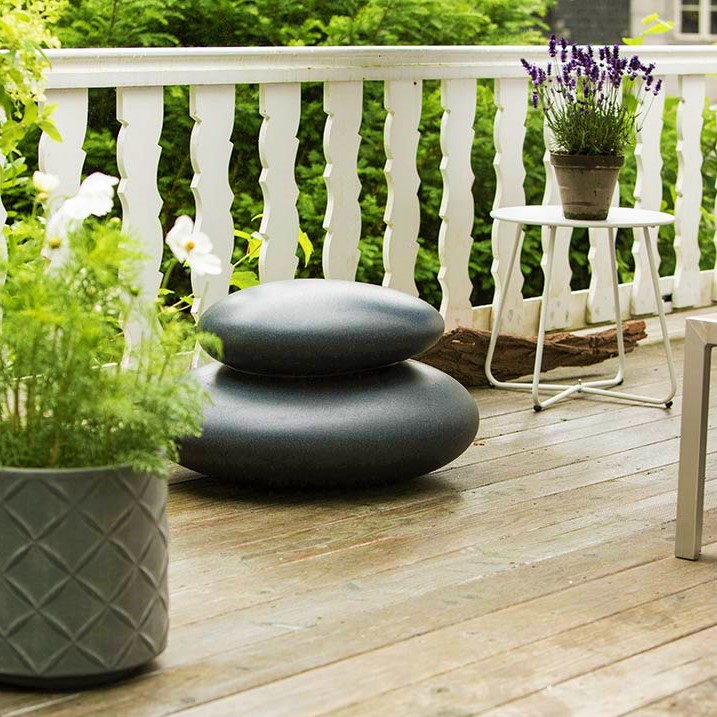 Die vom Design moderne Solarleuchte Steinoptik anthrazit Modell ZEN besteht aus zwei aufeinander gesetzten Flachsteinen in hochwertiger Kunststoffausführung, die von innen heraus leuchten. Die dekorative Steinleuchte sorgt dabei nicht nur in japanischen Gärten für schöne Lichtmomente, sondern setzt mit ihrer anthrazitfarbenen satinierten Oberfläche dekorativ und kreativ auch in Ihren Außenanlagen moderne bis zeitlose Lichtakzente. Die Design-Gartenleuchte überzeugt mit weichen Linien und lässt eine durchaus entspannte Lichtstimmung entstehen. Ob zum Anlaß eines Events, kleinerer und größerer Feiern oder einfach als den Abend begleitendes stimmungsvolles Lichtambiente, die im Design moderne Solarleuchte Steinoptik anthrazit erweckt Ihre Außenanlagen mit aufkommender Dunkelheit zum Leben. Setzen Sie dank der besonders ökonomischen Solar-Lichttechnik ganz ohne Stromanschluß sanfte Lichtakzente in Ihren Beeten, an Wegen oder auch auf Rasenflächen. Die Solarleuchte Steinoptik anthrazit wird aus einem hochwertigen Kunststoff (Polyethylen) gefertigt. Die stilvolle-Design-Gartenleuchte in simplifizierter Kieselsteinoptik ist wetterfest und gut vor Sonne, Frost und Regen geschützt. Die Bodenleuchte ist von den Maßen 40 cm hoch und 69 cm breit. Die oval-förmige Außenleuchte ZEN wird hier mit einem hochwertigen LED-Solarmodul kombiniert angeboten. Ganz ohne Stromanschluß oder lästige Verlängerungskabel sorgt die Solar-Steinleuchte ZEN für ein angenehmes Licht. Die dekorative Solar-Gartenbeleuchtung eignet sich aufgrund der flexiblen Einsetzbarkeit ohne Stromanschluß auch besonders gut für den gewerblichen Bereich.