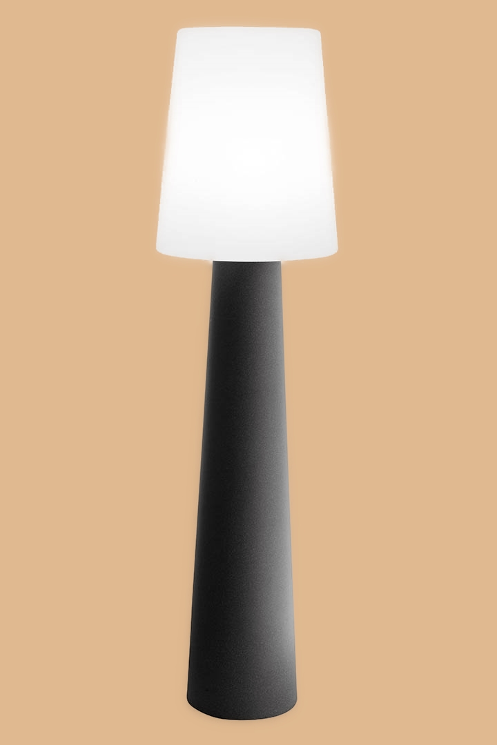 Die stehende Aussenleuchte anthrazit wirkt stilvoll und elegant zugleich. Mit dem dekorativen Hell-Dunkel-Kontrast sorgen Sie mit der mobilen Schirmleuchte im Outdoorbereich für eine gemütliche Wohnzimmer-Atmosphäre. Dabei wirkt die vom Material robuste und wetterfeste Außenleuchte sowohl beleuchtet als auch unbeleuchtet. Ob zum Anlaß eines Events, kleinerer und größerer Feiern oder einfach als den Abend begleitendes stimmungsvolles Lichtambiente, die stehende Aussenleuchte anthrazit erweckt Ihre Außenanlagen mit aufkommender Dunkelheit zum Leben und schafft gleichzeitig eine gemütliche Wohnzimmer-Atmosphäre. Die Außenleuchte ist von ihren Maßen 160 cm hoch und 41,5 cm breit. Die elegante Gartenleuchte wird aus besonders hochwertigem Polyethylen hergestellt. Die Oberfläche ist bei der Leuchte in ihrer Beschaffenheit satiniert. Die Standleuchte für Draußen ist absolut robust gegenüber Sonne, Regenwetter oder Frost. Die wetterfeste Leuchte wird in Deutschland fachmännisch hergestellt. Laufende Qualitätskontrollen sorgen für die besondere Hochwertigkeit dieser Leuchte. Der Hersteller bindet bei der Herstellung der vom Design modernen Außen-Stehlampe Behinderten-Werkstätten in den Produktionsprozeß mit ein und gibt auf die Leuchten ab Werk zwei Jahre Garantie. Die stehende Aussenleuchte anthrazit entspricht der Schutzart IP 44 und ist damit gut vor Spritzwasser geschützt. Die Leuchte hat ein Eigengewicht von 5,5 Kilogramm. Die Zuleitung ist 2,35 Meter lang und wird inklusive Schukostecker geliefert.