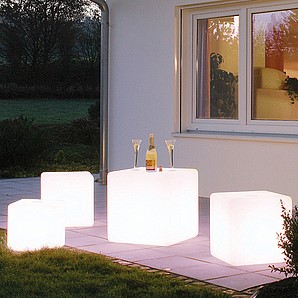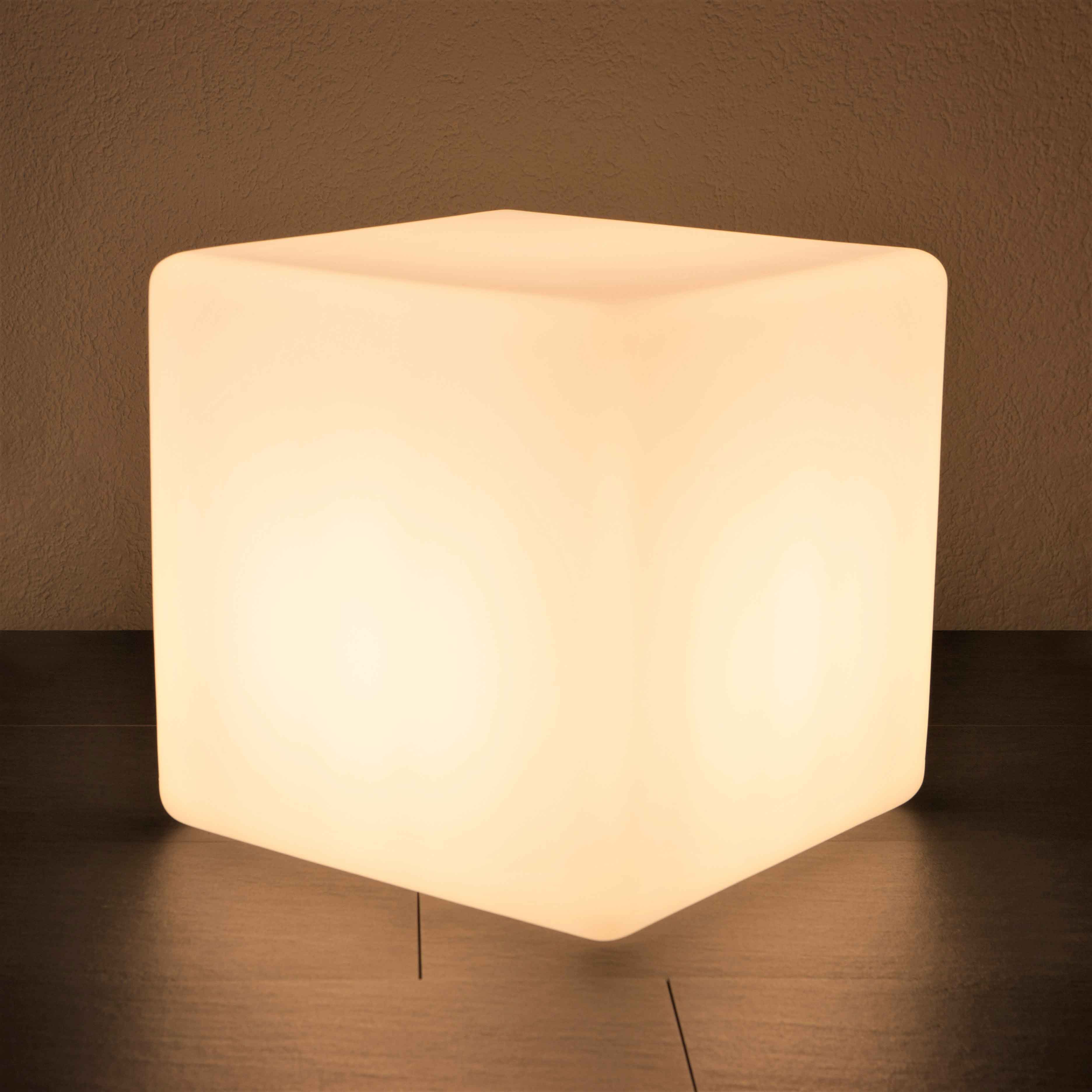 Die dekorative und zugleich praktische Terrassenleuchte Würfel aus unserer Leuchtenserie Cube ist 35 cm in der Höhe/ Breite und Tiefe. Die weißfarbene Gartenbeleuchtung ist flexibel einsetzbar. Die Würfelform wird hierbei gern als Sitz- oder auch Abstellgelegenheit genutzt, insbesondere als stilvolle Terrassenbeleuchtung. Letztlich ist diese hochwertige Außenbeleuchtung elegantes Sitzmöbel und moderne Außenbeleuchtung in einem. Bieten Sie Ihren Gästen doch neben den üblichen Tischen und Stühlen einfach mal eine etwas andere Sitzgelegenheit an. Die vom Design moderne Terrassenleuchte Würfel besticht optisch einfach mit ihrem schlicht klassisch-modernem Design und sorgt in der Dunkelheit für eine Wohlfühlatmosphäre in Ihrem Außenbereich.