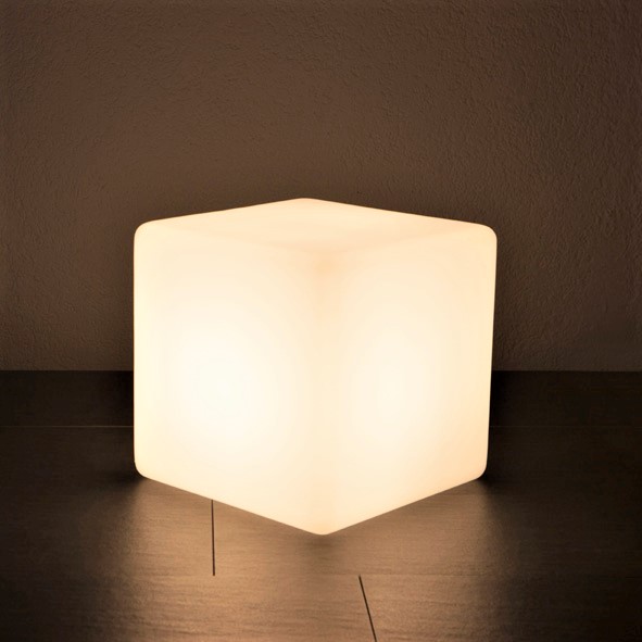 Das Leuchtengehäuse wird aus hochwertigem Polyethylen gefertigt und mit einem wasserdichten Gummianschluß angeboten. Die moderne Terrassenbeleuchtung der Leuchtenserie Cube ist formstabil und robust. Die ortsveränderliche Würfelleuchte wird hier mit einer E27 Fassung angeboten. Die Lampenfassung ist für Glühlampen, Energiesparlampen oder LED-Leuchtmitteln bis 25 Watt geeignet. Die stilvolle Terrassenleuchte Würfel entspricht der Schutzart IP 65 und ist damit staubdicht und gegen Strahlwasser aus einem beliebigen Winkel geschützt. Die elegante Außenenbeleuchtung in Würfelform ist besonders witterungsbeständig. Die Würfelleuchte der Leuchtenserie Cube ist seewasserbeständig und auch gegen chlorhaltiges Schwimmbadwasser geschützt. Die Terrassenleuchte Würfel Modell Cube entspricht der Schutzklasse II. Die Lieferung erfolgt inklusive 5 Metern Zuleitung mit Schukostecker und ohne Leuchtmittel. Sie erhalten auf die in Deutschland gefertigte Außenleuchte drei Jahre Garantie ab Werk. Die exklusive Gartenleuchte in Würfelform ist auch in weiteren Formen erhältlich, z.B. als Pyramide, als Kugel oder auch als Säulenleuchte. Klicken Sie für weitere Infos z.B. zu den exklusiven Pyramidenleuchten einfach auf den folgenden Link Pyramiden-Aussenleuchten. Setzen Sie mit den verschiedenen geometrischen Formen modern und stilvoll tolle Lichtakzente in Ihrem Außenbereich.