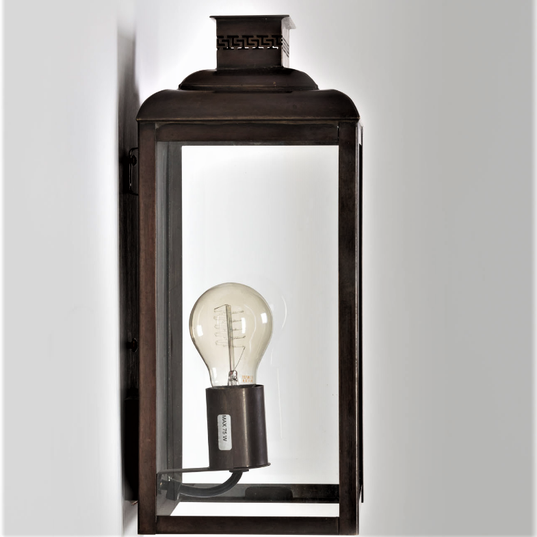 Die Vintage Aussenbeleuchtung Kensington zieht mit ihrem extravaganten Design die Blicke auf sich. Die antike Wandleuchte aus Messing ist von den Maßen 36 cm hoch, 22 cm breit und 13 cm tief. Platzieren Sie die stilistisch antike Aussenbeleuchtung im Hauseingangsbereich oder auch als Beleuchtung an Nebengelassen oder anderen Fassadenbereichen, wo Sie mehr Helligkeit in der Dunkelheit schaffen wollen. Wir empfehlen aufgrund der Schutzart IP 23 die Verwendung an geschützteren Außenbereichen wie z.B. unter dem Dachkasten oder anderen Vorbauten Ihrer Immobilie. Die Vintage Aussenbeleuchtung Modell Kensington entspricht der Schutzklasse 1.