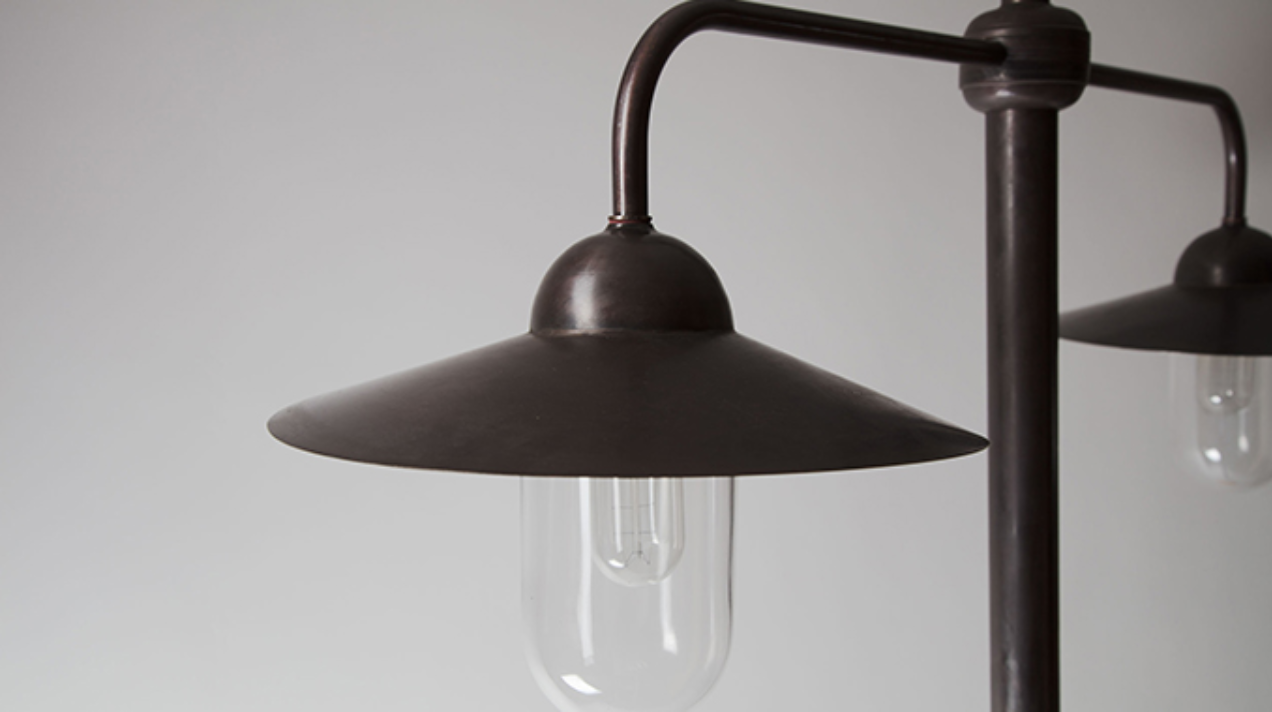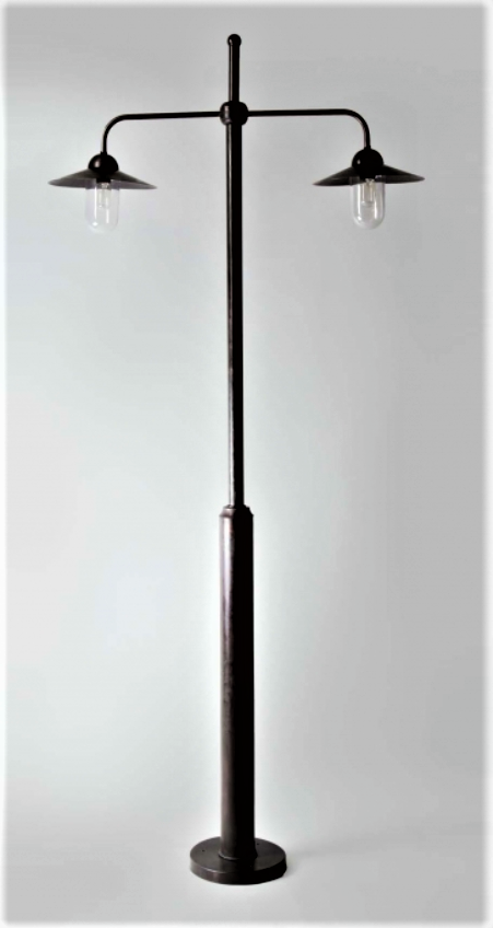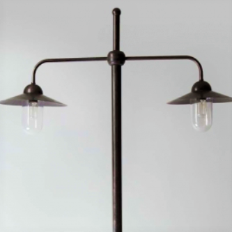 Der Vintage Kandelaber E27 ist eine zweiarmige Schirmleuchte, die nostalgisch-antikes Flair in Ihre Außenanlagen bringt. Stabil und robust sind diese Schirmleuchten, hier mit einem Finish Alt-Messing behandelt, für eine eine große Stabilität an einem Eisenmast befestigt. Die 2-flammige Hoflampe der Kollektion Cour Cheverny stammt aus einer französischen Manufaktur. Das Design wurde nach dem Vorbild von den städtischen Laternen aus dem 19. Jahrhundert kreiert und eignet sich gut als Ergänzung verschiedener Archtikturrichtungen z.B. des Jugendstils oder auch des modernen Landhausstils. Der Vintage Kandelaber der Leuchtenkollektion Cour Cheverny überzeugt authentisch mit seinen weichen Formen und der Verarbeitung verschiedener hochwertiger Materialien wie Messing und Echtglas. Die nostalgisch wirkende Laternenleuchte spendet mit 2 E 27-Fassungen ein umlaufendes Licht. Sie bestücken den Vintage Kandelaber mit herkömmlichen Glühlampen bis 60 Watt je Seite. Leuchtmittel sind bei Lieferung nicht enthalten. Wir empfehlen für ein eher warm-weißes stimmungsvolles Licht die Verwendung der Lichtfarbe 2700 Kelvin. Die hochwertig in Handarbeit gefertigte Außenleuchte antik entspricht der Schutzart IP 44. Die zweiarmige Mastleuchte kann als Hoflampe, als Wegeleuchte, als Lichtquelle im Eingangsbereich oder auch dunklen Ecken Ihrer Gartenanlage eingesetzt werden.