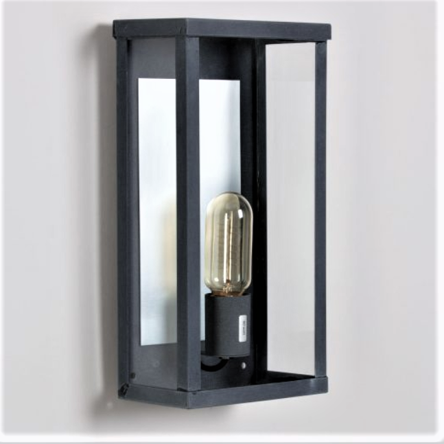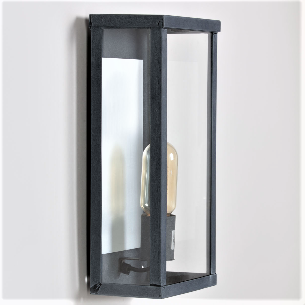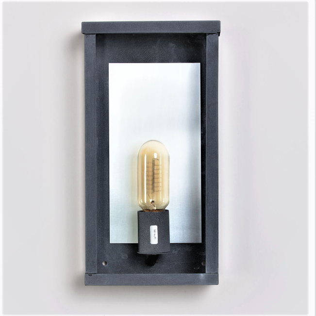 Die Vintage Wandlampe 36cm aus der Kollektion Antibes besticht durch ihre Simplizität in Form und Design. Die vom Stil moderne Außenwandleuchte überzeugt mit einer hochwertigen Arbeit und handverarbeiteten Materialien. Die Vintage Wandlampe 36cm wird aus Zink und Echtglas hergestellt. Die zeitlose und zugleich authentische Außenbeleuchtung ist in der Höhe 36 cm hoch, 19 cm breit und 12 cm tief. Die Designer- Aussenleuchte passt neben den Hauseingang ebenso wie als dekorative Lichtquelle an Nebengelassen. Die Vintage Wandlampe 36cm Serie Antibes erinnert vom Design an den spanischen Maler Picasso, der für seine modernen Kunstwerke und Skulpturen bekannt war. Antibes ist insbesondere durch das dort ansässige Picasso-Museum bekannt. Daher stammt vermutlich auch der Name dieser Kollektion. Die Vintage Wandlampe 36cm passt mit der Quaderform an Fassaden mit moderner Architektur ebenso gut, wie auch- durch die Verarbeitung von Zink- zu Häusern mit älterer Stilrichtung. Die E 27-Fassung der dekorativen Wandleuchte wird mit herkömmlichen Leuchtmitteln bis 60 Watt Leistung bestückt. Die Verwendung von modernen Retro-Leuchtmitteln oder Energie-Sparlampen ist selbstverständlich möglich. Die Lieferung der Aussenleuchte erfolgt ohne Leuchtmittel. Die Vintage Wandlampe 36cm entspricht der Schutzart IP 23. Im Vordach und an Eingangstüren ist die Unikatsleuchte gut vor Regen geschützt und kann dort bedenkenlos montiert werden. Haben Sie bezüglich der Leuchte einen speziellen Farbwunsch? Die Manufaktur Atelier Lumart bietet auch als Sonderwunsch Hochglanzbeschichtungen in vielen RAL-Farben an. Alternativ empfehlen wir auch die Vintage Wandleuchte 41cm ebenfalls aus Zink mit dem Finish Alt-Zink.