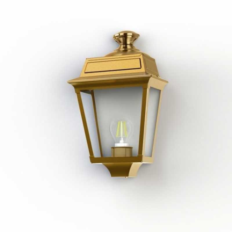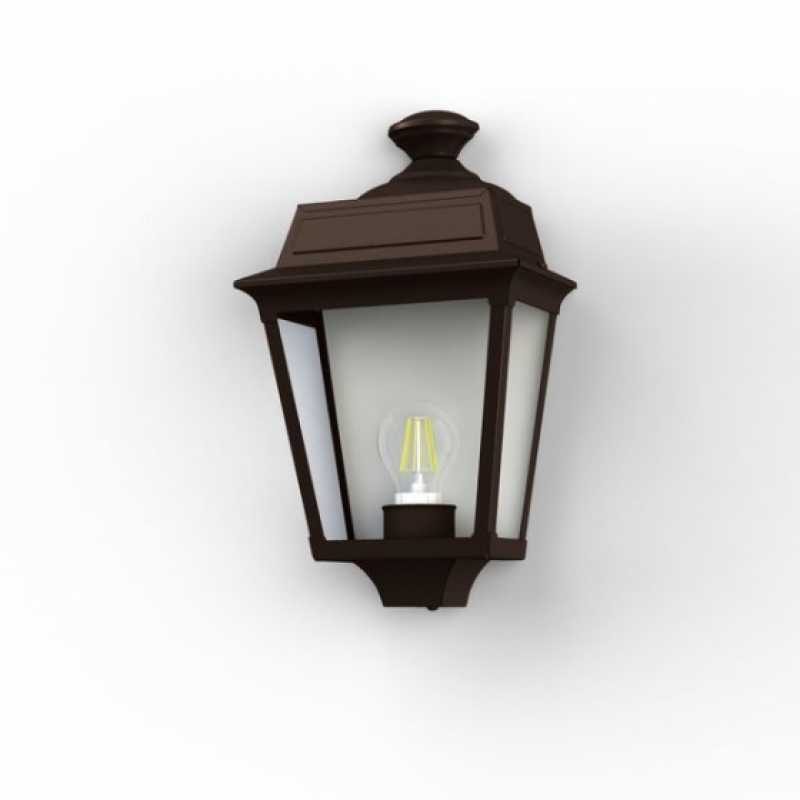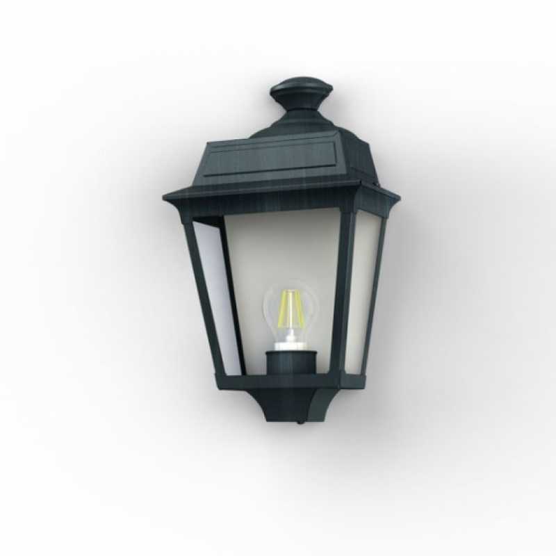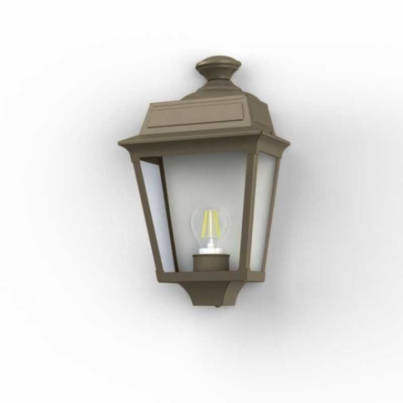 Die Wandlampe für Draußen Modell Vogese ist eine dreiseitige Wandlaterne, die direkt rückseitig an der Hausfassade angebracht wird. Die wetterfeste Außenwandleuchte ist hochwertig verarbeitet und von ihren Maßen 36 cm hoch, 21,4 cm breit und ganze 12,5 cm tief. Die stilvolle Designerleuchte Vogese wird in der Ausführung mit Aluminium oder wahlweise auch mit Messing angeboten. Bei der im Design klassischen Wandlampe für Draußen stehen Ihnen je nach Geschmack und örtlichen Vorgaben bis zu 8 verschiedene Farben/RAL-Farben zur Verfügung. Wählen Sie bei der dekorativen Außenbeleuchtung zwischen tiefschwarz (RAL 9005), weiß, schiefergrau, tannengrün (RAL 6009), sandsteinfarben, alt-rustikal (rostbraun), Grünspan-Patina oder goldfarbener Patina. Der französische Hersteller gibt ab Werk auf das beschichtete Aluminium eine 25-jährige Anti-Korrosionsgarantie*. Die drei Glaseinsätze werden aus Echtglas gefertigt. Alternativ bietet der französische Hersteller Klarglas oder Mattglas (Milchglas) an. Wer es also absolut blendfrei benötigt, sollte sich für Mattglas entscheiden. Die hochwertig verarbeitete Wandlampe für Draußen Modell Vogese entspricht der Schutzart IP 44 sowie der Schutzklasse 1.