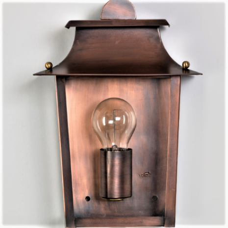 Die Wandleuchte Landhausstil 30cm ist in der Oberfläche fachmännisch von Hand mit dem Finish säurepatiniertes Messing bearbeitet und wird dadurch zu einem echten Kunsthandwerk/ Unikat. Die dekorative Außenbeleuchtung passt perfekt in den überdachten Hauseingangsbereich oder auch als Terrassenbeleuchtung unter einen Dachüberstand.