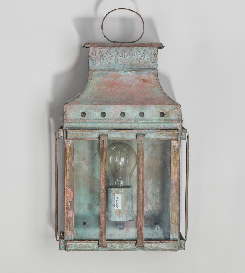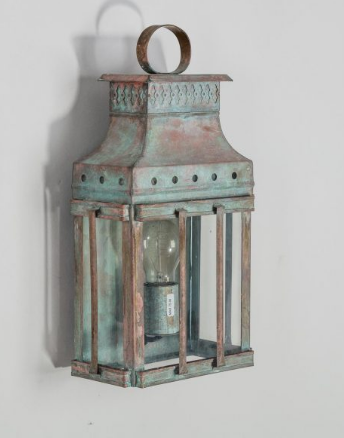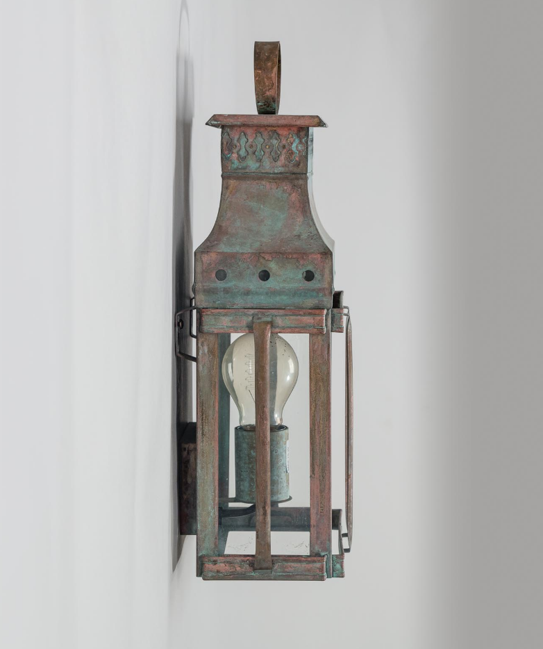 Die Wandleuchte antik-grün aus der Modellserie Ramatuelle wirkt nostalgisch und vermittelt ein Gefühl, dass man sich irgendwie in alte Traditionen zurückversetzt fühlt. Die Aussenwandleuchte wird aus Messing gefertigt und erzeugt mit ihrer in echter fachmännischer Handarbeit gefertigten Oberfläche im Vert de gris-Finish (Grünspan-Optik) detailvoll ein nostalgisch-antikes Ambiente verbunden mit einem Hauch Romantik. Die Wandleuchte antik-grün aus der Kollektion Ramatuelle ist von den Maßen 40 cm hoch, 21 cm breit und schmale 13 cm tief.