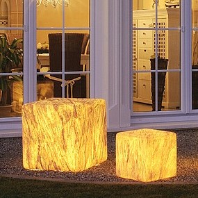 Die authentische Würfel-Aussenleuchte Dubai 35 ist mit einer Größe von 36 cm Höhe x Breite das kleinere Modell. Das Gehäuse besteht bei der dekorativen Würfelleuchte aus Polyethylen, die Beschichtung aus echtem von Hand aufgetragenen Quarzsandstein. Die verarbeiteten Schrauben sind bei dieser exklusiven Gartenleuchte für besondere Langlebigkeit aus Edelstahl. Die außergewöhnliche Gartenleuchte kann auch als Sitz- oder Ablagefläche genutzt werden. Die natürliche Struktur des Quarzsandsteines wird im Abendlicht durch die Beleuchtung nochmals betont. Die Würfel-Aussenleuchte ist mit der Schutzart IP 65 ausgestattet, seewasserbeständig und auch im Poolbereich mit Chlorwasser problemlos einsetzbar.