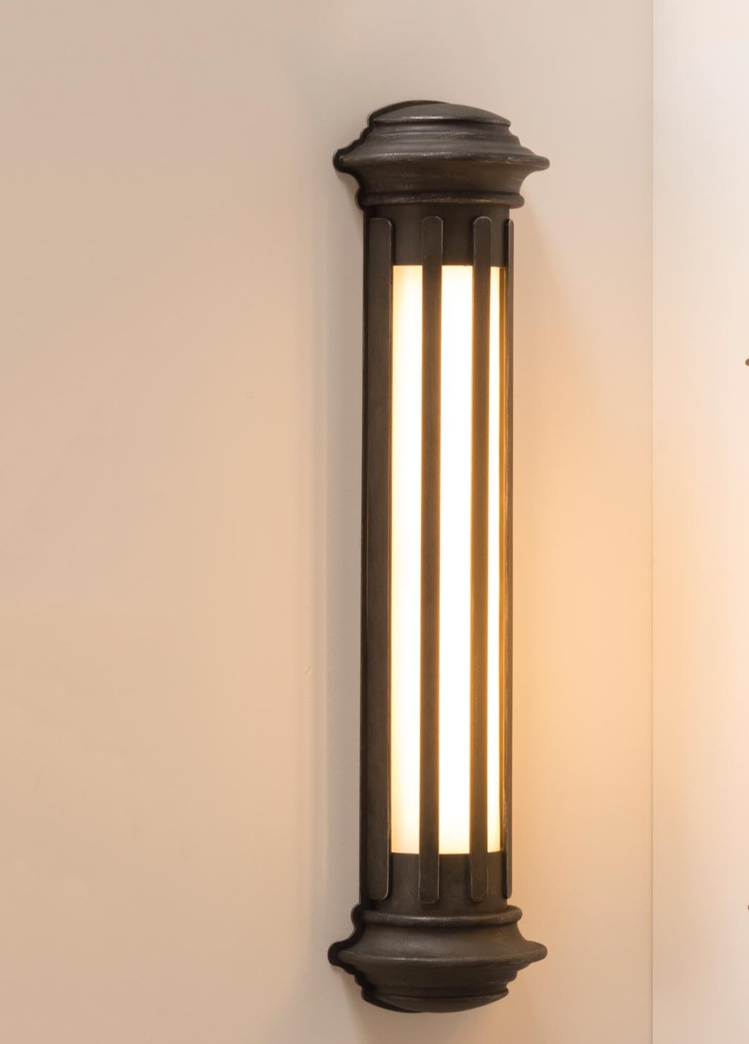 Unsere exklusive Aussenwandleuchte 116cm gehört zu unserer Leuchtenserie Florenz. Das zeitlose bis klassische Design fügt sich sehr gut in eine moderne Architektur ein, passt aber auch sehr gut zu einem historischem Gebäude oder auch dem heute sehr beliebten Landhausstil. Die länglich designte Außenleuchte vereint Ästhetik und Funktionalität auf perfekte Weise. Die hochwertige Wandleuchte sorgt mit ihrer länglichen Form nicht nur für eine optimale Beleuchtung, sondern setzt auch stilvolle Akzente an Ihrer Hausfassade. Die Leuchte wird rückseitig direkt an der Hausfassade befestigt. Die schmiedeeisernen Längsstreben und die halbkreisförmigen Rundornamente am unteren und am oberen Ende der Leuchte geben dieser Außenbeleuchtung ihre ganz eigene Note. Die hochwertigen Materialien feuerverzinkter Stahl und Aluminium sorgen für Langlebigkeit und Widerstandsfähigkeit gegen Witterungseinflüsse. Das Finish in Eisen Natur verleiht der Outdoor-Wandlampe Florenz einen klassisch-historischen und zugleich modernen Look, der sich harmonisch in jede Umgebung einfügt. Die exklusive Aussenwandleuchte Florenz ist von ihren Maßen 115,7 cm hoch, 28 cm breit und zeigt einen Wandabstand von schmalen 17,5 Zentimetern. Das Gesamtgewicht beträgt bei dieser Qualitätsleuchte 23 kg. Die handgefertigte Unikatsleuchte wird in einer deutschen Leuchtenmanufaktur fachmännisch hergestellt. Die zwei 2G11-Lampenfassungen werden bei der exklusiven Aussenwandleuchte inklusive moderner LED-Leuchtmittel geliefert (Leistung jeweils 18 Watt). Diese Designer-Außenleuchte aus Schmiedeeisen lässt sich auch perfekt mit einer Wegeleuchte aus der gleichen Serie kombinieren bzw. ergänzen. Alternativ empfehlen wir Ihnen auch die kleinere Outdoor-Wandleuchte im gleichen Design, unsere exklusive Aussenwandleuchte 78cm.