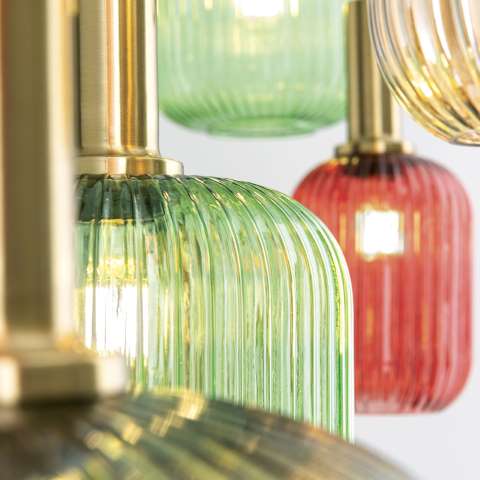 ✔ Acht bunte Glaslampenschirme mit stilvollem Rillendekor