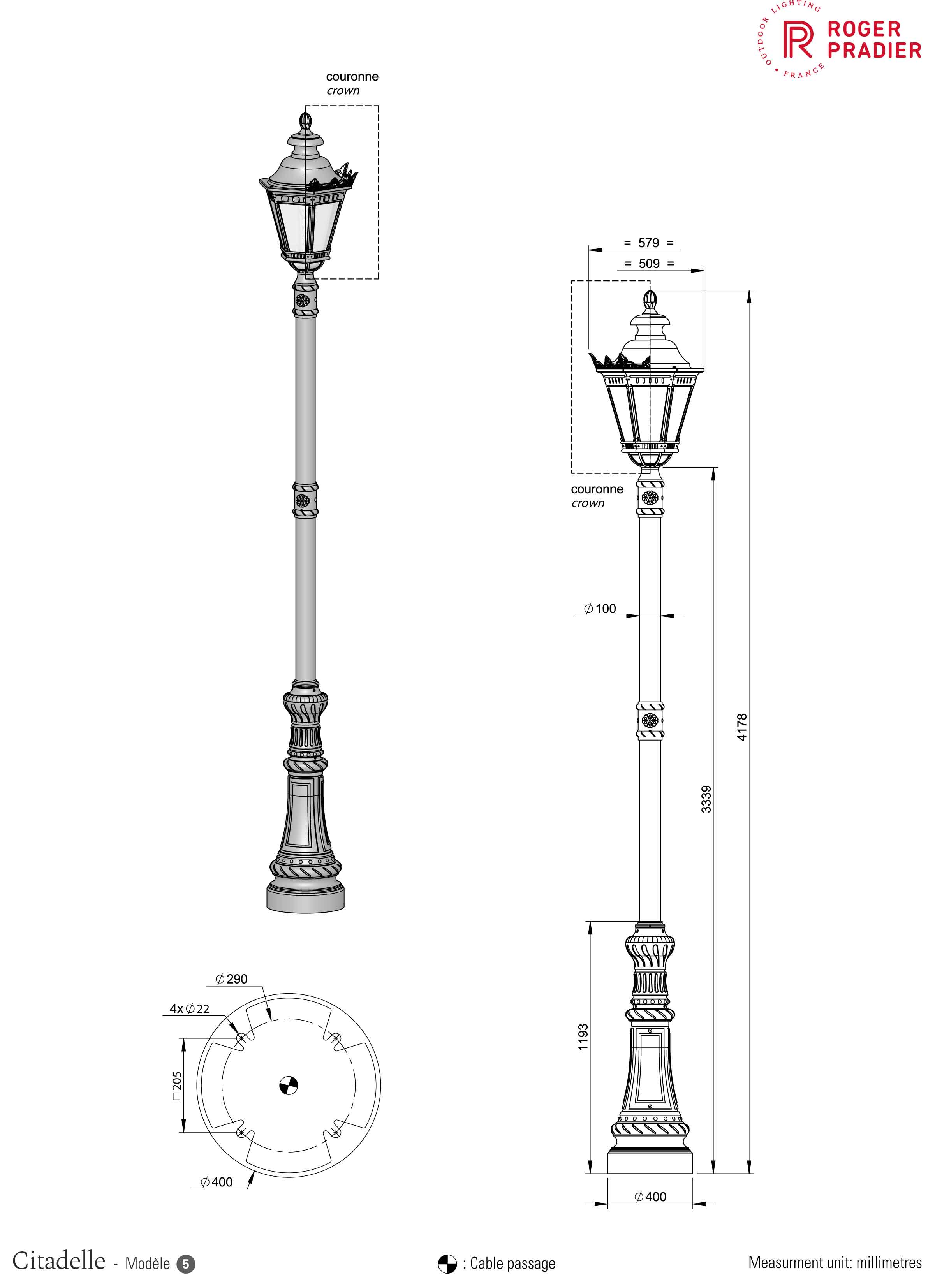 Alle Leuchten des Herstellers Roger Pradier verlassen die Manufaktur mit einer zusätzlichen technischen Garantie von 3 Jahren. Weitere Leuchtenarten wie eine Outdoor-Hängeleuchte, Sockelleuchten und Außenwandlaternen mit verschiedenen Wandarmen sowie auch eine zweiflammige Mastlaterne runden das Leuchtensortiment der Modellserie Citadelle ab. Befestigungsmaterial für die Wandmontage ist bei der Lieferung inklusive. Wir empfehlen Ihnen alternativ auch unsere historische Standleuchte 4 aus der deutschen Leuchtenserie Berlin.