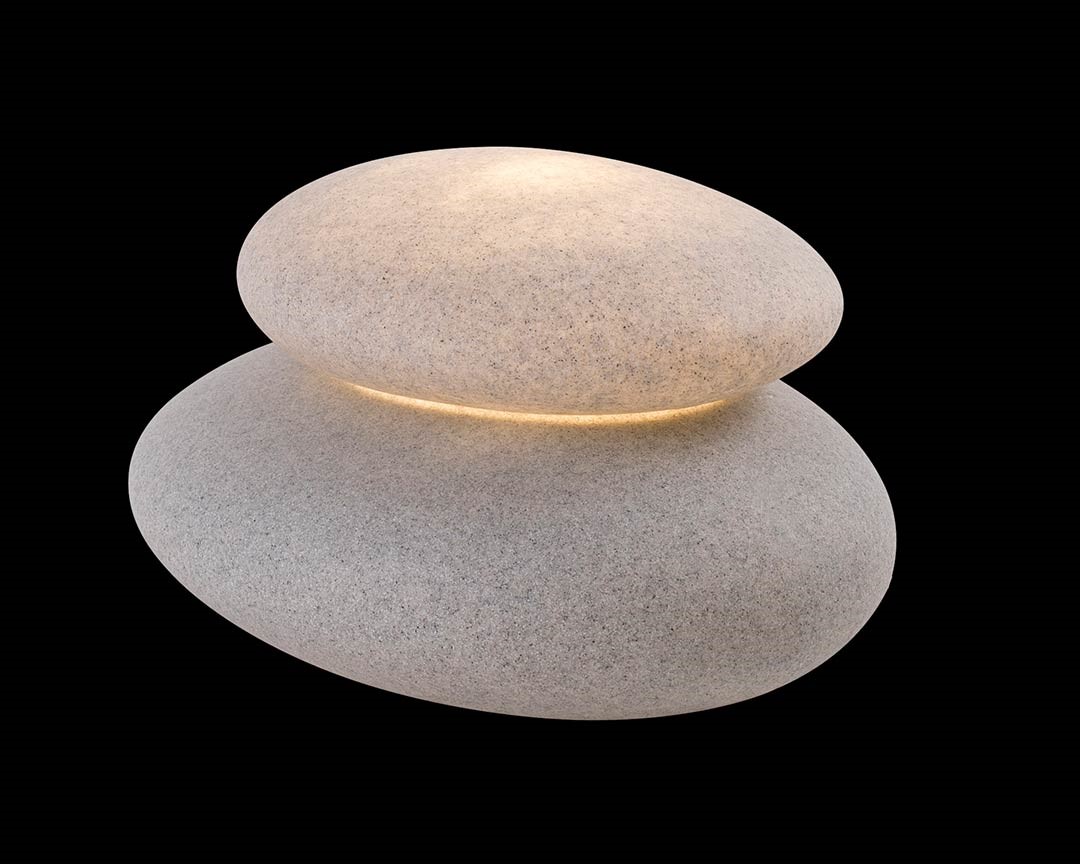 Die große Deko-Steinleuchte Modell ZEN besteht aus zwei aufeinander gesetzten Flachsteinen in hochwertiger Kunststoffausführung. Die Steine sind in der Mitte miteinander verbunden. Die wetterfesten "Steine" passen mit LED-Leuchtmittel oder in der Ausführungsvariante mit Solartechnik als Außenbeleuchtung oder als geschmackvolle Auflockerung Ihrer Außenanlagen. Die findlingsteinfarbene hellgraue Außenleuchte sorgt dabei nicht nur in japanischen Gärten für schöne Lichtmomente, sondern setzt mit ihrer satinierten Oberfläche dekorativ und kreativ auch in Ihren Außenanlagen moderne bis zeitlose Lichtakzente. Die Design-Gartenleuchte aus unserer Leuchtenserie ZEN erzeugt mit weichen Linien eine durchaus entspannte Grundstimmung, sowohl beleuchtet als auch unbeleuchtet. Ob zum Anlaß eines Events oder einfach als den Abend begleitendes stimmungsvolles Lichtambiente, die moderne Gartenbeleuchtung ZEN erweckt Ihre Außenanlagen mit einem warm-weißen Licht in der Dunkelheit zum Leben. Auch als Terrassenbeleuchtung macht diese dekorative Steinleuchte eine gute Figur. Die Bodenbeleuchtung Modell ZEN ist von ihren Maßen 40 cm hoch und 69 cm breit.