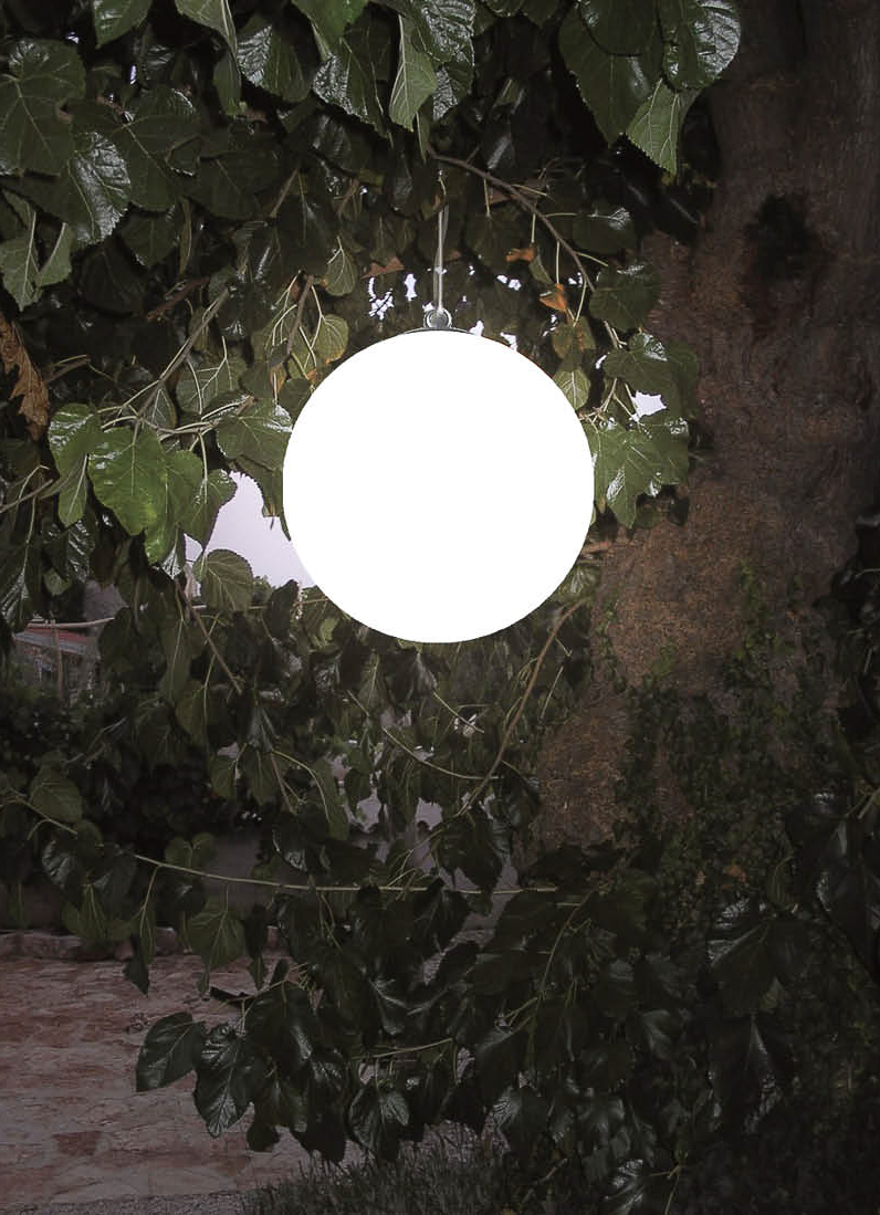 Ihr Restaurant soll noch einen tollen Bickfang im Außenbereich bekommen? Die im Design moderne große Kugel Aussenleuchte hängend ist mit einem Durchmesser von 100 cm das größte Modell unserer Leuchtenserie Olymp. Mit dieser Leuchtengröße setzen Sie beeindruckende Lichtakzente in Ihren Außenanlagen. Die große Hänge Kugellampe für Draußen passt für größere Außenbereiche, wo in der Höhe stilvoll moderne Lichtakzente gesetzt werden sollen. Auch als stilvolle moderne Beleuchtung in hohen großen Bäumen ist die große Hängeleuchte in Form einer weißen Kugel ein echter Eyecatcher. Die große Kugelhaube besteht aus schlagfestem und pflegeleichtem sowie absolut robustem Polyethylen. Die große Kugel Aussenleuchte hängend Modell Olymp besitzt eine weiß satinierte Oberfläche und ist mit einem äußerst langlebigen LED-Stab in der Lichtfarbe Warmweiß (2700 Kelvin) ausgestattet. Die große Kugel-Pendelleuchte ist nicht dimmbar. Die Lichtintensität ist vom deutschen Hersteller mit 3600 Lumen angegeben. Die große Kugel Aussenleuchte hängend sorgt mit ihrem blendfreien Licht abends in Ihrem Außenbereich für Wohlbehagen schafft mit ihrem warmweißen Licht eine stimmungsvolle Lichtatmosphäre. Bevorzugen Sie eher ein gelbliches Licht, um den Mond in Ihren Garten zu zaubern? Auf Anfrage haben wir die Möglichkeit, die große Kugellampe Olymp auch mit besonders warmfarbigen 2200 Kelvin als LED-Leuchtmittel herstellen zu lassen. Dann sprechen Sie uns gern darauf an. Die voluminöse Lichtkugel ist ein schöner Blickfang, beleuchtet als auch unbeleuchtet und ist dazu im Verbrauch mit moderner und hochwertiger LED-Lichttechnik sehr energieeffizient im Stromverbrauch (36 Watt). Der Leuchtenfuß mit der Öse zum Befestigen besteht aus eloxiertem Aluminium. Das Nettogewicht der Kugelleuchte Olymp beträgt ca. 17,7 kg.