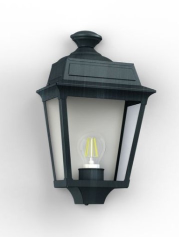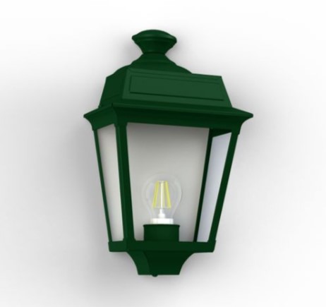 Wer eine grüne Außenlampe klassisch antik und doch mit einem Touch Moderne sucht, trifft mit der grünen Außenwandleuchte Modell Vogese sicherlich eine gute Wahl. Die wetterfeste Qualitätsleuchte Vogese ist eine dreiseitige Wandlaterne, die rückseitig direkt an der Hausfassade angebracht wird. Die stilvolle Außenleuchte ist hochwertig verarbeitet und von ihren Maßen 36 cm hoch, 21,4 cm breit und ganze 12,5 cm tief. Die Designerleuchte Vogese wird hier in der Ausführung mit Aluminium angeboten. Bei der Wandleuchte stehen Ihnen je nach Geschmack und örtlichen Vorgaben die verschiedenen Grüntöne tannengrün (RAL 6009), dunkelgrün (RAL 6009) oder patinagrün zur Auswahl. Der französische Hersteller gibt ab Werk auf das beschichtete Aluminium eine 25-jährige Anti-Korrosionsgarantie*. Die drei Glaseinsätze werden aus Echtglas gefertigt. Alternativ bietet der französische Hersteller Klarglas oder Mattglas (Milchglas) an. Wer es also absolut blendfrei benötigt, sollte sich für Mattglas entscheiden. Daher ist die grüne Außenlampe klassisch auch als Gastronomie Außenbeleuchtung eine funktional wie auch optisch überzeugende Lichtlösung für den Außenbereich von Hotellerie und Gastronomie. Begeistern Sie Ihre Gäste mit einer ansprechenden Beleuchtung. Die hochwertig verarbeitete Wandlaterne entspricht der Schutzart IP 44 sowie der Schutzklasse 1.