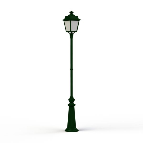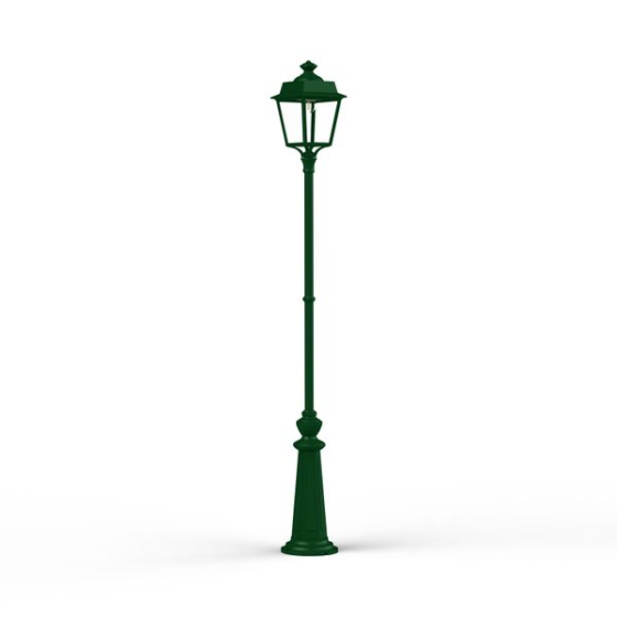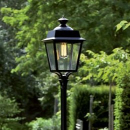 Die grüne Aussenleuchte Laterne aus unserer Leuchtenserie Vogese 1 überzeugt mit einem klassischen Design und der Verwendung hochwertiger Materialien. Die vierseitige Gartenlaterne ist insgesamt 1,98 Meter hoch und 22 cm breit. Die absolut wetterfeste grüne Mastleuchte wird aus Aluminium gefertigt. Der Leuchtenmast wird aus Stahl hergestellt. Bei der stilvollen Gartenbeleuchtung stehen Ihnen verschiedene Grüntöne zur Verfügung. Wählen Sie bei der Designer Gartenlaterne zwischen tannengrün (RAL 6009), dunkelgrün (RAL 6009) und der Farbe antikgrün-patiniert. Die Farben finden Sie auch noch mal unter dem Link Farbauswahl Roger Pradier. Der französische Hersteller gibt ab Werk auf das beschichtete Aluminium eine 25-jährige Anti-Korrosionsgarantie*. Alle Leuchten des Herstellers Roger Pradier verlassen die Manufaktur mit einer zusätzlichen technischen Garantie von 5 Jahren. Die vier Fenstereinsätze werden je nach Wunsch aus klarem oder aus opalfarbenen (weißem) PMMA gefertigt. PMMA ist ein Kunststoff, der sich insbesondere durch seine Brillianz und Kratzfestigkeit auszeichnet. Wer ein blendfreies Licht bevorzugt, sollte sich für die Variante PMMA opalfarben entscheiden. Die dekorative Außenleuchte Modell Vogese 1 entspricht der Schutzart IP 65 (absolut wasserbeständig) sowie der Schutzklasse 1. Der rundförmige Sockelfuß ist am Boden im Durchmesser 23 cm groß. Bringen Sie mit der grüne Aussenleuchte Laterne Vogese 1 stilvoll Licht ins Dunkle Ihrer Außenanlagen. Die dekorative Außenleuchte macht aber auch bei Tage eine gute Figur und sorgt durchaus für ein klassisches Ambiente in Ihren Außenanlagen.