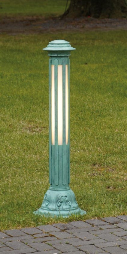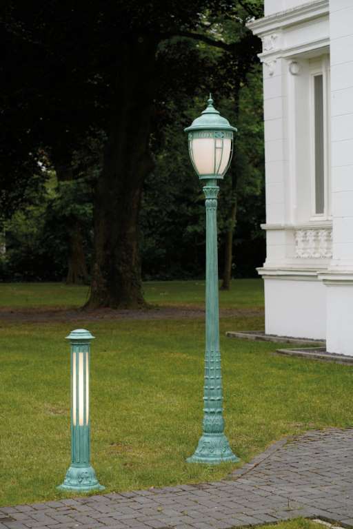Unsere grüne Wegeleuchte antik aus unserer exklusiven Leuchtenserie Liberty überzeugt mit hochwertigen Materialien, fachmännischer Verarbeitung und einem außergewöhnlichem Design. Die stilvolle Aussenleuchte Liberty verleiht mit dem Finish grün antik in Verbindung mit weißem Opalglas Ihrem Extérieure einen elegant bis zeitlosen Charme und passt auch sehr gut als Beleuchtung zum Landhausstil. Die klassisch elegante Wegbeleuchtung und Gartenleuchte wird in einer deutschen Leuchtenmanufaktur fachmännisch in echter Handarbeit aus massivem feuerverzinktem Stahl hergestellt. Der kunstvoll gestaltete Leuchtenfuß strebt mit filigranen Streben sekrecht nach oben. Echtes Opalglas sorgt für ein umlaufendes und blendfreies Licht. Das rundförmige Leuchtendach rundet mit mehreren Ebenen die dekorative Außenleuchte nach oben ab. Die 1,05 Meter hohe und 20 cm breite grüne Wegeleuchte antik eignet sich perfekt als Wegbeleuchtung, kann aber natürlich auch in Beeten, seitlich der Auffahrt oder im Vorgarten als authentische Außenbeleuchtung eingesetzt werden. Auch in Abständen montiert als Reihenbeleuchtung ist diese Gartenleuchte ein echter Hingucker. Die grüne Wegeleuchte antik ist alternativ auch mit Klarglas erhältlich (gern auf Anfrage). Die Leuchtenserie Liberty bietet dazu ergänzend perfekt abgestimmt auch eine Wandlaterne, eine große Sockelleuchte oder eine Standleuchte/ Gartenlaterne an. Die massive Aussenleuchte Liberty hat ein Gewicht von 19 kg und sollte damit auch massiven Wetterbedingungen standhalten.