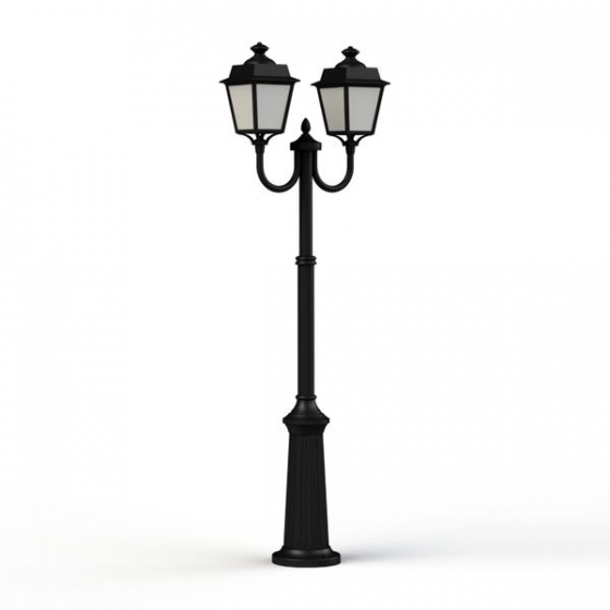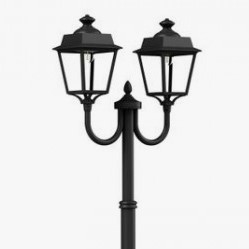 Die klassische Aussenbeleuchtung 2-flammig Modell Vogese 1 überzeugt mit einem ebenso klassischen wie auch modernen Design. Die stilvolle Mastleuchte besteht aus einem 65 cm hohen Sockel, der diverse Verzierungen zeigt, dem teleskopischen Leuchtenmast, 2 U-förmigen Verteilern und den 2 vierseiteigen Leuchtenhauben. Ein weiteres Zierelement mittig zwischen den Leuchtenhauben sorgt für einen eleganten Abschluß. Der einzelne Leuchtenkorpus ist hierbei 38,7 cm hoch und 22 cm breit. Der Leuchtenmast lässt sich individuell in der Höhe einstellen (von einer gesamten Mindesthöhe von 1,99 Metern bis zu einer Maximal-Gesamthöhe von 2,43 Metern. Der rundförmige Sockelfuß ist am Boden im Durchmesser 26,3 cm groß. Die hochwertig verarbeitete Designerleuchte wird fachmännisch aus langlebigem Aluminium gefertigt. Der Leuchtenmast wird für die erforderliche Stabilität aus Stahl hergestellt. Bei der klassischen Aussenbeleuchtung 2-flammig Modell Vogese 1 stehen Ihnen acht verschiedene Farben/RAL-Farben zur Verfügung. Wählen Sie hierbei zwischen den Farben tiefschwarz (RAL 9005), weiß, schiefergrau, tannengrün (RAL 6009), sandsteinfarben, alt-rustikal (braun), grün-Patina oder gold-Patina. Der französische Hersteller gibt ab Werk auf das beschichtete Aluminium eine 25-jährige Anti-Korrosionsgarantie*. Alle Leuchten des Herstellers Roger Pradier verlassen die Manufaktur mit einer zusätzlichen technischen Garantie von 5 Jahren. Die vier Fenstereinsätze werden aus klarem oder aus opalfarbenen PMMA gefertigt. PMMA ist ein Kunststoff, der sich insbesondere durch seine Brillianz und Kratzfestigkeit auszeichnet. Die dekorative Außenleuchte Modell Vogese 1 entspricht der Schutzart IP 65 und ist damit absolut wasserbeständig. Die klassische Aussenbeleuchtung 2-flammig Modell Vogese 1 entspricht der Schutzklasse 1. Die dekorative Außenleuchte ist auch unbeleuchtet bei Tage schön anzuschauen. Die klassische Gartenlaterne sorgt optisch in Ihrem Außenbereich für ein klassisch-modernes Ambiente und sorgt funktional mit ihren 2 Laternenhauben für eine sehr gute Ausleuchtung. Die Farbauswahl von Roger Pradier finden Sie bei uns auch nochmal unter dem folgenden Link Farbauswahl Roger Pradier.