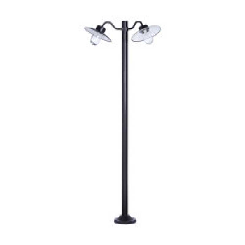 Die klassische Gartenleuchte 2-flammig aus der Leuchtenserie Belcour eignet sich als stilgerechte Gartenbeleuchtung, exklusive Vorgartenbeleuchtung oder auch für andere dunkle Ecken als Außenbeleuchtung, wo in der Dunkelheit tolle Lichtakzente gesetzt werden sollen. Die im Design klassisch-moderne Außenleuchte ist von ihren Maßen 219,6 cm hoch, 85,5 cm breit und 32 cm tief. Das geblasene Diffuserglas wird aus Klarglas gefertigt, ist auf Anfrage aber auch mit Mattglas (ohne Aufpreis) erhältlich. Die klassische Gartenleuchte 2-flammig vom französischen Hersteller Roger Pradier überzeugt das Auge des Betrachters optisch. Aber auch funktional spendet die wetterfeste Außenleuchte mit einem breit nach unten und seitlich strahlendem Lichtkegel viel Helligkeit. Die E 27-Lampenfassungen werden bei der zweiflammigen Gartenbeleuchtung mit Leuchtmitteln bis 60 Watt Leistung bestückt. Die Leuchte ist geeignet für Leuchtmittel der Energieklassen: A++, A+, A, B, C, D, E. Wir empfehlen für eine besondere Optik moderne Retro-Leuchtmittel mit rundem Glaskörper. Aus okönomischen und ökologischen Gründen sind LED-Leuchtmittel oder auch Energiesparlampen empfehlenswert. Leuchtmittel sind bei der Lieferung nicht enthalten.