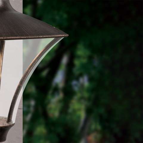 Entdecken Sie die zeitlose Eleganz der klassischen LED Außenwandleuchte unserer Modellserie Villach. Das Antik-Finish verleiht der stilvollen Outdoor Wandleuchte mit LED eine besondere Note, während die Farbkombination aus Schwarz und Kupfer für eine edle Optik sorgt. Die Beschreibung Retro Chic mit modernem Touch trifft vermutlich die Außenleuchten-Serie Villach am besten. Dabei spielt die stilvolle Außenbeleuchtung mit klassischen Elementen wie einer schwarz-kupfer Lackierung im antiken Finish und kombiniert sie mit einer erfrischend gebogenen Laternenform. Setzen Sie mit der hochwertigen klassischen LED-Außenwandleuchte dekorative Lichtakzente an Ihrer Hausfassade. Die Outdoorleuchte eignet sich dabei für den Hauseingangsbereich ebenso wie als Beleuchtung für Seitenwände/ Außenfassaden oder auch die Beleuchtung von Nebengelassen. Dabei ist die Wandleuchte für Außen nicht nur ein dekorativer Blickfang, sondern sorgt auch für eine warme und einladende Lichtatmosphäre. Hergestellt aus robustem Siluminguss und klarem Acrylglas, vereint sie besondere Langlebigkeit mit zeitlosem Design. Das Herzstück dieser Leuchte ist die leistungsstarke und absolut langlebige LED-Lichttechnik mit 1120 Lumen und einer Leistung von 12 Watt. Die LED-Platinen sind oben im Leuchtendach fest montiert, lassen sich aber später mithilfe eines Technikers gut austauschen. Dank ihrer warmweißen Lichtfarbe von 3000 Kelvin tauchen Sie Ihre Außenumgebung in ein angenehmes und behagliches Licht, das zum Verweilen einlädt. Darüber hinaus zeichnet sich die klassische LED Außenwandleuchte durch ihre Wetterbeständigkeit und besondere Robustheit aus. Die klassische Außenwandleuchte LED Modell Villach entspricht der Schutzart IP 65. Ganz gleich, ob Regen, Schnee oder Sturm – sie trotzt allen Witterungsbedingungen und behält ihre Schönheit über Jahre hinweg bei. Die klassische LED Außenwandleuchte Villach ist von ihren Maßen 36,2 cm hoch, 28,5 cm breit und 19 cm tief. Verleihen Sie Ihrem Zuhause einen Hauch von Klasse und Modernität mit unserer Außenwandleuchte Villach. Entdecken Sie dazu passend auch unsere klassische Außenbeleuchtung mit LED, eine 2 meterhohe Mastleuchte ebenfalls aus der Modellserie Villach.