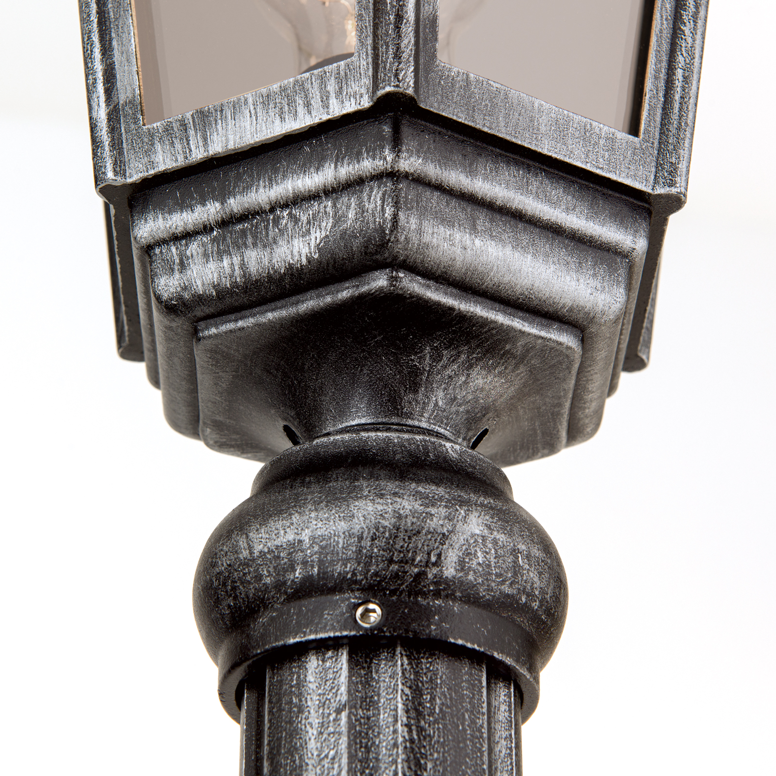 Die klassische Wegeleuchte gehört zu unserer Leuchtenserie Ischgl vom österreichischen Hersteller Orion-Leuchten. Die stilvolle hohe Außenbeleuchtung wird aus Siluminguss hergestellt, einer besonders widerstandsfähigen Aluminiumgusslegierung aus Aluguss in Verbindung mit Silicium. Silicium wird z.B. auch im KfZ- und Flugzeugbau als Material verwendet. Die klassische Wegeleuchte Ischgl ist 2,11 Meter hoch. Die Laternenhaube zeigt eine Breite von 25,5 Zentimetern. Die 6 Fenstereinsätze der Laterne werden aus hochwertigem Rauchglas gefertigt. Rauchglas erfreute sich schon bereits in den sechziger Jahren in der Beleuchtung großer Beliebtheit.