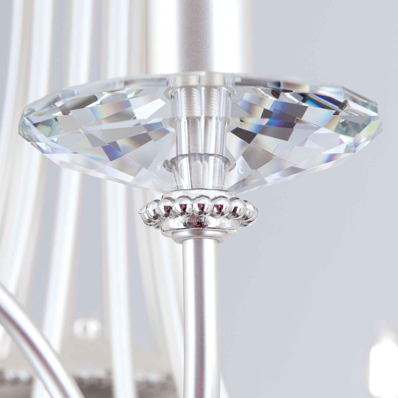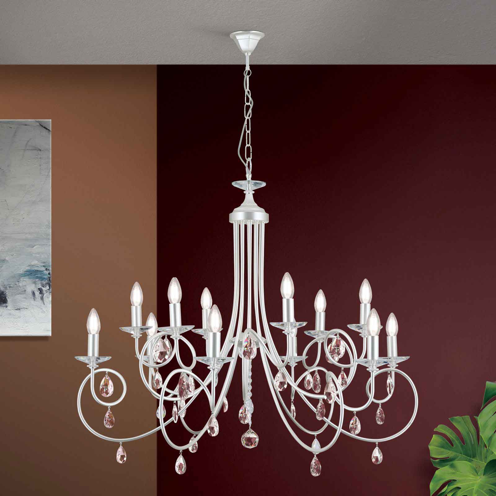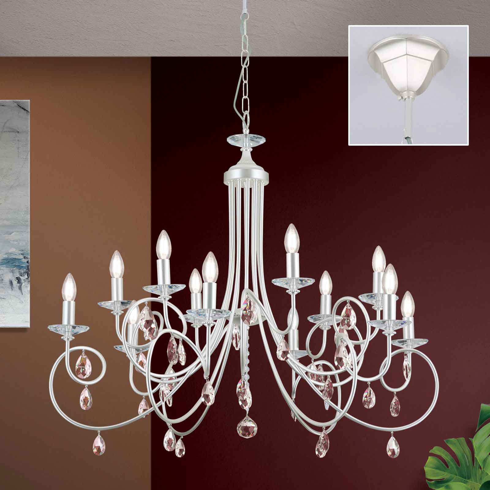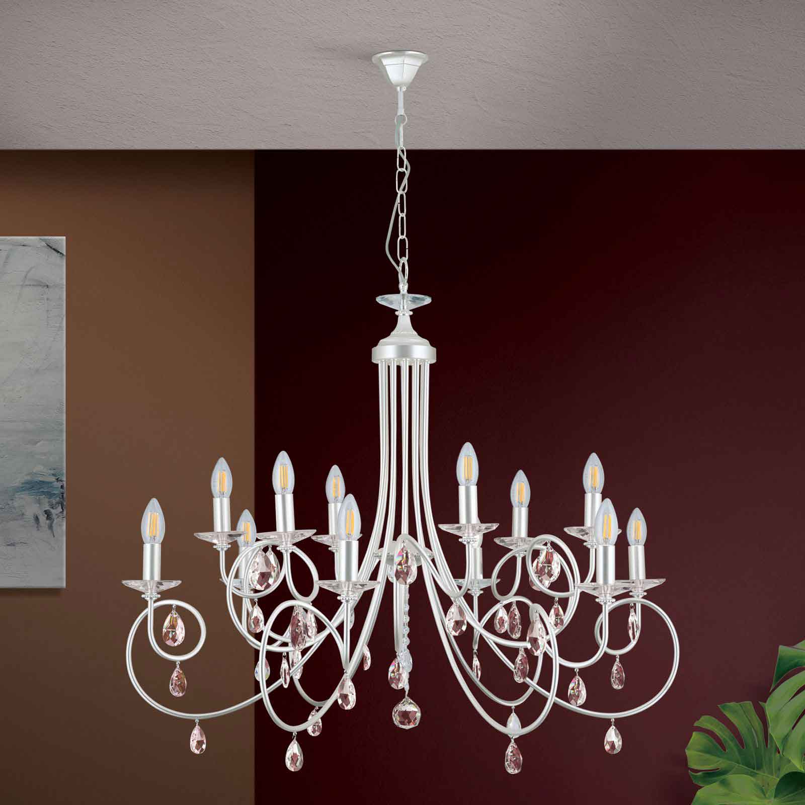 Das lebendige Design mit den geschwungenen Linien und den im Licht funkelnden Kristallen ergibt eine exklusive Innenbeleuchtung für gehobene Ansprüche. Der klassische Kronleuchter Silber Modell Sophie entspricht der Schutzart IP 20 und ist damit ausschließlich für Innenräume als Beleuchtung geeignet. Die dekorative Decken-Hängeleuchte ist auf Anfrage auch in der Farbe goldmatt erhältlich. Alternativ empfehlen wir Ihnen auch unseren klassischen Kronleuchter Jugendstil mit einer Gesamthöhe von 1,9 Metern und matt-champagnerfarbenen Glashauben; ebenfalls ein echter Eye-Catcher.