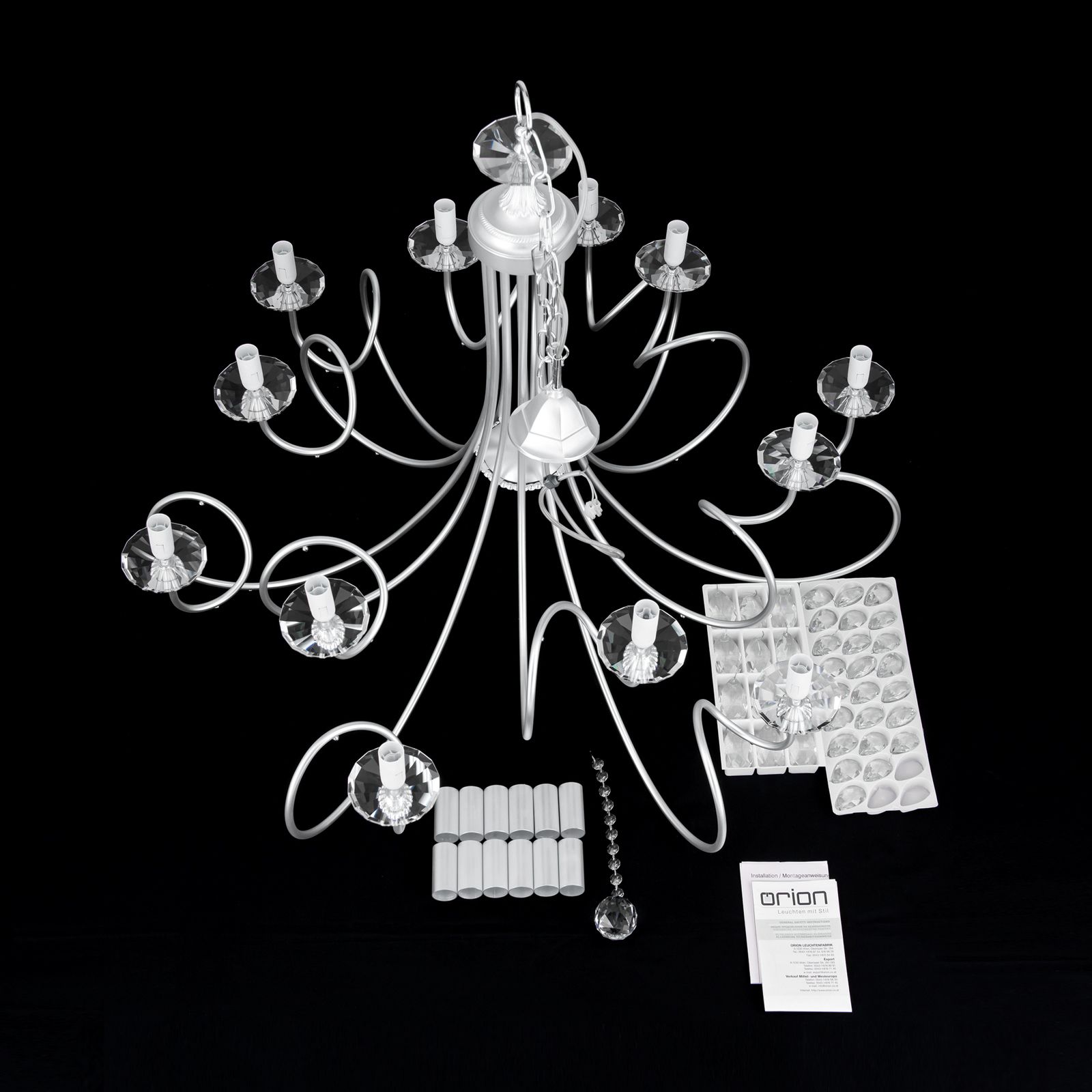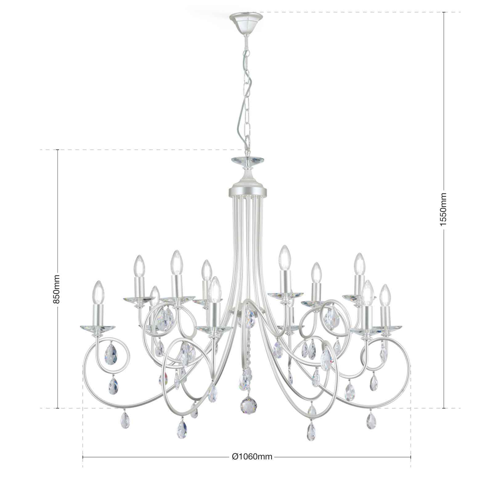 Der klassische Kronleuchter Silber Modell Sophie ist eine lichtstarke und zugleich klassische als auch moderne Design-Deckenbeleuchtung mit edlem 1A-Vollschliff-Kristallbehang. Der 12-flammige silberfarbene Luster, wie diese Beleuchtung in Österreich auch genannt wird, weist eine Gesamthöhe von 1,55 Metern auf. Der Leuchtenkorpus allein misst 85 cm. Die Länge der Abhängung beträgt 70 cm. Der Durchmesser beträgt bei der großen dekorativen Decken-Innenleuchte imposante 1,06 Meter. Das in der Farbe matt silberne Leuchtengestell wird in Handarbeit aus robustem Stahl gefertigt. Der klassische Kronleuchter Silber Modell Sophie beeindruckt das Auge des Betrachters mit seinen 12 geschwungenen Armen und dem hängenden Kristallbehang. Das sich darin brechende Licht lässt faszinierende Lichtspiele entstehen. Die stilvolle Innenbeleuchtung eignet sich besonders gut als Hotelbeleuchtung in der Empfangshalle oder anderen größeren Räumen sowie für die gehobene Gastronomie. Der dekorative Luster ist mit einem Phasenanschnittsdimmer dimmbar. Die rundförmigen Kerzenhalter (Abdeckungen) bestehen ebenfalls aus Kristall. Zwölf E 14-Lampenfassungen versorgen den luxuriösen Kristall-Luster mit je bis zu 40 Watt Leistung. Sie erhalten bei uns mit Lieferung des klassischen Kronleuchter Silber 13 LED-Leuchtmittel zur sofortigen Bestückung inklusive. Die beilegten Leuchtmittel entsprechen mit 4,5 Watt der Energieeffizienzklasse F. LED-Leuchtmittel verbrauchen durchschnittlich etwa 80 % weniger Energie als herkömmliche Leuchtmittel. Wir legen für alle Fälle ein Leuchtmittel extra dazu. Damit auch nichts mehr dem sofortigen Lichterglanz entgegensteht. Wir haben für ein eher angenehme Lichtatmosphäre die Lichtfarbe Warmweiß mit einer einzelnen Lichthelligkeit von 470 Lumen gewählt. Wir haben für unsere Kunden einige Tipps zur Berechnung der richtigen Leuchtengröße aufgeführt. Schauen Sie gern unter dem folgenden Link Kronleuchter für weitere Infomationen. Denn schließlich sollte die Größe Ihrer neuen Deckenbeleuchtung zu der Raumgröße und Umgebung passen.