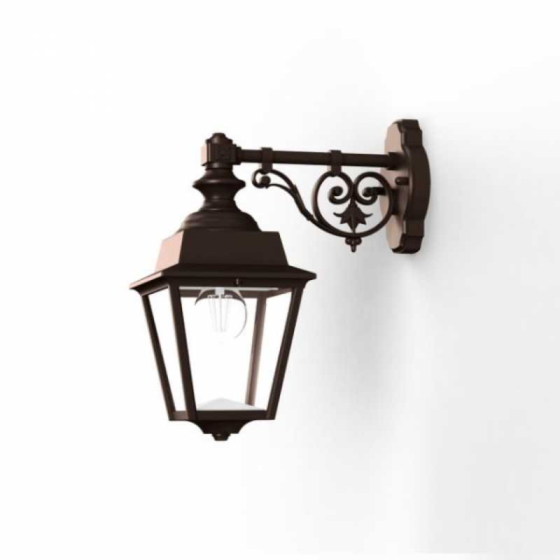 Die im Vergleich zu anderen Leuchtenserien kleine Aussenwandlaterne aus unserer Leuchtenserie Chenonceau eignet sich sehr gut als Außenbeleuchtung für eine Jugendstilvilla, Landhäuser, Gehöfte aber auch als stilvolle Außenbeleuchtung im Kontrast zu moderner Architektur. Die stilistisch klassische Außenleuchte ist von ihren Maßen 35,4 cm hoch, lediglich 16,5 cm breit und mit dem dekorativem Wandarm insgesamt 30,6 cm tief. Der Leuchtenarm mit seinen zahlreichen Verzierungen, das vierseitige Leuchtendach mit verschiedenen geometrischen Formen sowie die sich nach unten etwas verjüngende Laternenform lassen die Außenwandbeleuchtung mit einem ganz eigenem Charme erstrahlen. Die Wandmanschette ist von ihren Maßen 10,3 cm breit und 14,9 cm hoch. Die kleine Aussenwandlaterne ist in verschiedenen Farben erhältlich. Hierbei stehen Ihnen bis zu 8 verschiedene Farben/RAL-Farben in der Auswahl zur Verfügung. Wählen Sie bei der hochwertigen französischen Außenwandleuchte zwischen weiß beschichtetem Aluminium oder den Farben tiefschwarz (RAL 9005), seidengrau (RAL 7044), tannengrün (RAL 6009), sandsteinfarben, alt-rustikal oder grün-Patina oder gold-Patina. Weitere Farben werden auf Anfrage gefertigt. Der französische Hersteller gibt auf das beschichtete Aluminium eine ab Werk 25-jährige Antikorrosionsgarantie*. Ein perfektes Design gepaart mit absoluter Funktionalität, dafür steht die kleine Aussenwandlaterne Modell Chenonceau. Die Leuchte ist hochwertig verarbeitet und verzaubert Ihren Hauseingang oder Fassaden von Nebengelassen mit den entsprechenden Leuchtmitteln (mit warmweißem Licht) mit einer tollen Lichtatmosphäre. Die dekorative Hausbeleuchtung wird mit einer E 27-Lampenfassung angeboten. Sie bestücken die kleine Aussenwandlaterne mit Leuchtmitteln bis zu 75 Watt Leistung. Leuchtmittel sind bei der Lieferung nicht enthalten. Alle Leuchten des Herstellers Roger Pradier verlassen die Manufaktur mit einer zusätzlichen technischen Garantie von 3 Jahren. Die stilvolle Wandlaterne entspricht der Schutzart IP 44 und ist damit allseitig spritzwasser geschützt und regenfest.