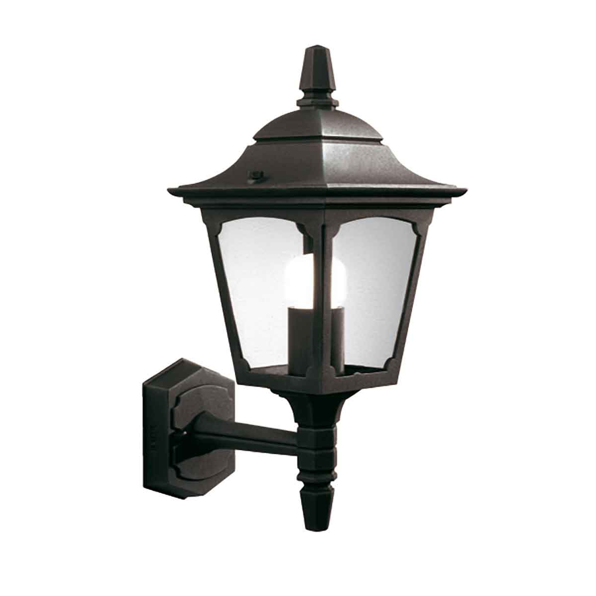 Die schwarze Außenwandleuchte entspricht der Schutzart IP 44. Damit ist die Outdoorleuchte allseitig spritzwassergeschützt und regenfest. Die E 27-Lampenfassung wird mit Leuchtmitteln bis maximal 100 Watt Leistung bestückt. Wir empfehlen aus ökonomischen Gründen die Verwendung von LED-Leuchtmitteln. Die Lichtfarbe Warmweiß (z.B. 2700 Kelvin) sorgt dabei eher für eine stimmungsvolle Lichtatmosphäre, während die Lichtfarbe kaltweiß mehr Helligkeit erzeugt. Der englische Hersteller bietet ab Werk eine 10-jährige Antikorrosionsgarantie an (sofern die Leuchte nicht innerhalb von 8 Kilometern nahe der Küstenregion montiert ist). Die kleine Wandlaterne rustikal Modell Chapel-Mini überzeugt optisch als auch funktional. Wer auf eine solide Verarbeitung und ein ansprechendes Design Wert legt, trifft mit dieser Leuchtenserie sicherlich eine gute Wahl. Die dekorative Außenbeleuchtung eignet sich aufgrund ihrer Robustheit auch sehr gut als Beleuchtung für das Gewerbe und als stilvolle Restaurantbeleuchtung. Leuchtmittel sind bei der Lieferung nicht enthalten. Die Leuchtenserie Chapel finden Sie zum Vergleich auch unter dem folgenden Link rustikale Aussenleuchte Chapel.