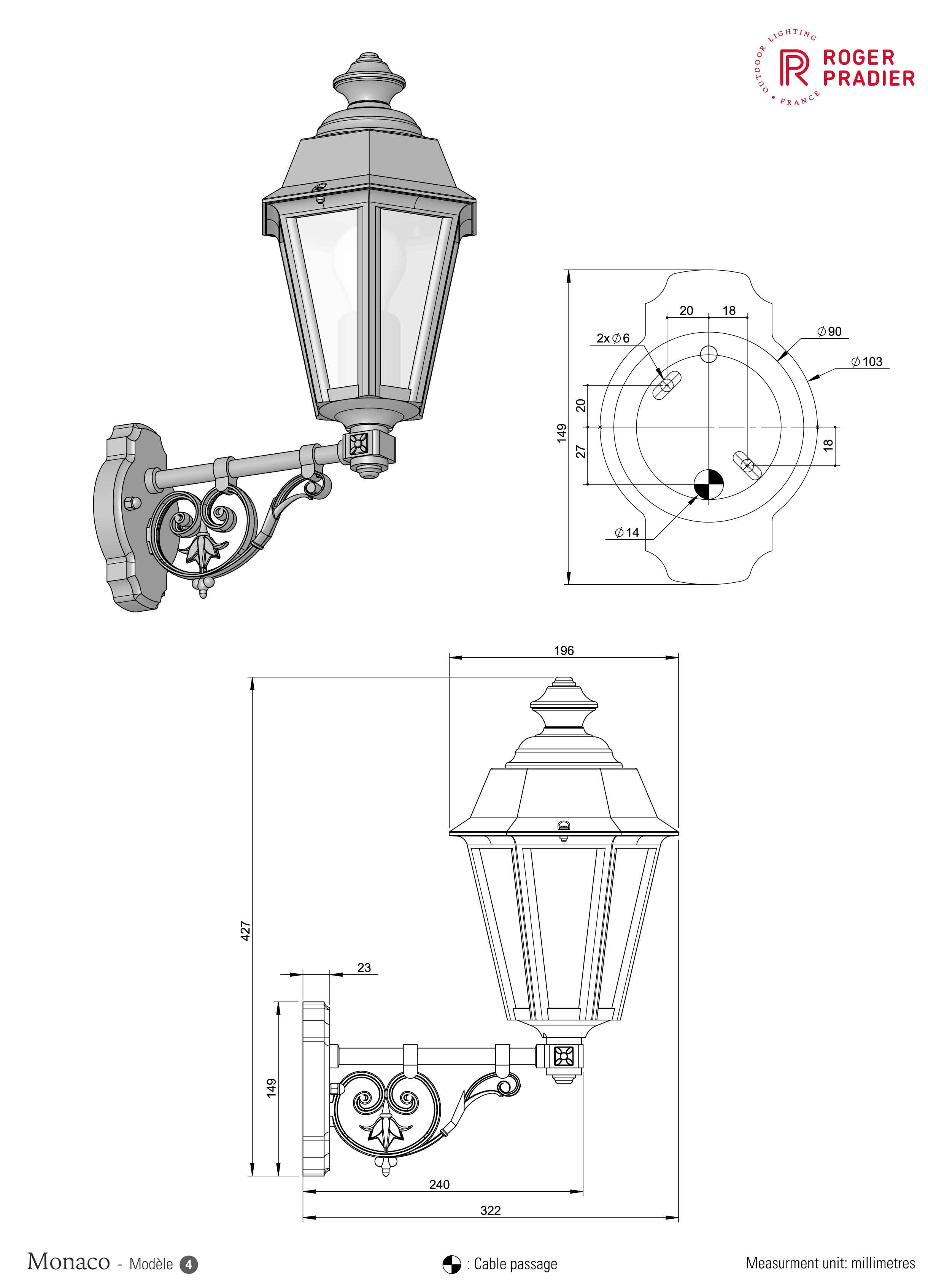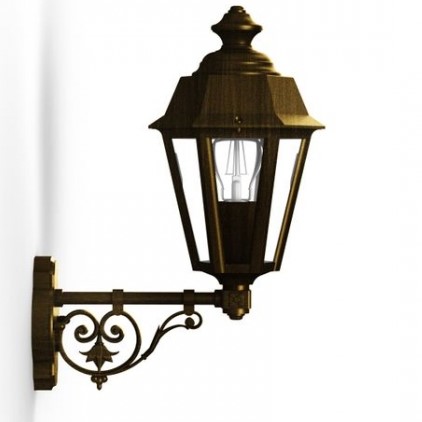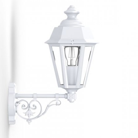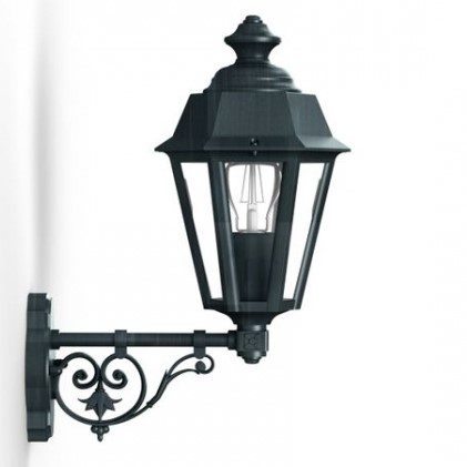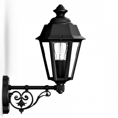 Die kleine Wandlaterne stehend aus der Leuchtenserie Monaco ist eine 6-seitige Wandlaterne, die aufrecht auf einem Wandarm befestigt ist. Der dekorative Wandarm besteht aus zierenden geschwungenen Elementen. Die sechsseitige Außenwandleuchte entspricht der Schutzart IP 44 und ist damit allseitig gut vor Spritzwasser geschützt. Die im Design klassische Wandlampe außen ist hochwertig verarbeitet. Die stilvolle Designer Außenleuchte Monaco wird komplett aus Aluminium gefertigt. Bei der bezaubernden Außenwandleuchte stehen Ihnen verschiedene Farben zur Verfügung. Wählen Sie bei der kleinen Wandlaterne stehend zwischen den Farben tiefschwarz (RAL 9005), weiß, Grün-Patina oder Gold-Patina und der Farbe alt-rustikal (rostbraun). Der französische Hersteller gibt ab Werk auf das beschichtete Aluminium eine 25-jährige Anti-Korrosionsgarantie*. Die sechs Fenstereinsätze werden aus Klarglas gefertigt. Die stilvolle Außenbeleuchtung ist von ihren Maßen 42,7 cm hoch, schmale 19,6 cm breit und weist eine Leuchtentiefe von 32,2 cm auf. Die hintere Wandbefestigung hat einen ist 10,3 cm breit und 14,9 cm hoch. Der Laternenkorpus ist allein 30,8 cm hoch und misst eine Breite von 19,6 cm. Die Laternenform ist nach unten zunehmend verjüngt.