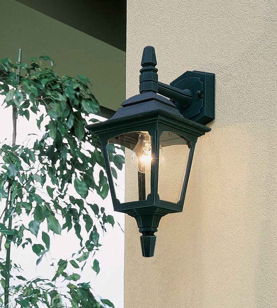 Die robuste Außenwandleuchte entspricht der Schutzart IP 44. Damit ist die Outdoorleuchte allseitig spritzwassergeschützt und regenfest. Die E 27-Lampenfassung wird bei der kleinen Wandleuchte rustikal mit Leuchtmitteln bis maximal 100 Watt Leistung bestückt. Wir empfehlen aus ökonomischen Gründen die Verwendung von LED-Leuchtmitteln. Die Lichtfarbe Warmweiß (z.B. 2700 Kelvin) sorgt dabei eher für eine stimmungsvolle Lichtatmosphäre, während die Lichtfarbe kaltweiß mehr Helligkeit erzeugt. Der englische Hersteller bietet ab Werk eine 10-jährige Antikorrosionsgarantie (sofern die Leuchte nicht innerhalb von 8 Kilometern nahe der Küstenregion montiert ist) an. Die kleine Wandleuchte rustikal Modell Chapel-Mini überzeugt optisch als auch funktional. Wer auf eine solide Verarbeitung und ein ansprechendes Design Wert legt, trifft mit dieser Leuchtenserie sicherlich eine gute Wahl. Die dekorative Außenbeleuchtung eignet sich aufgrund ihrer Robustheit auch sehr gut als Gastronomiebeleuchtung oder Gewerbe-Außenbeleuchtung. Leuchtmittel sind bei der Lieferung nicht enthalten. Die Außenwandleuchte Chapel-Mini mit aufwärts ausgerichteter Laternenhaube finden Sie auch direkt unter dem folgenden Link kleine Wandlaterne rustikal.