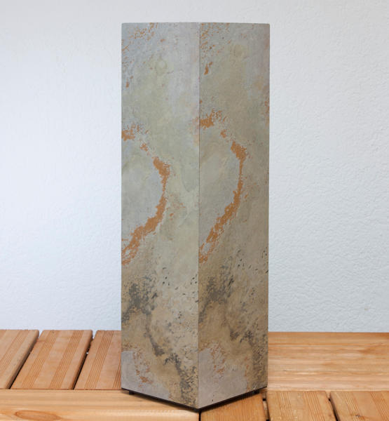 Die moderne Wegeleuchte Canyon ist eine stimmungsvolle Aussenbeleuchtung mit einem außergewöhnlichen Material. Die authentische Säulenleuchte besticht optisch mit ihrem säulenförmigen Korpus aus GFK-verstärktem Naturschiefer. Der Naturschiefer bewirkt in der Dunkelheit eine Lichtstimmung mit ganz besonderem Flair. Der Leuchtenboden besteht bei dieser Leuchte aus hochwertigem 15 mm starkem PVC. Die stilvolle Gartenbeleuchtung ist 20 cm breit, 20 cm tief und 70 cm hoch. Die exklusive Säulenleuchte spendet in der Dunkelheit ein angenehmes und wunderschönes Licht. Die in der hochwertigen Gartenleuchte langlebigen LEDs sind aus Gründen der Nachhaltigkeit später austauschbar. Sie wählen bei der modernen Wegeleuchte Canyon zwischen drei verschiedenen LED-Ausführungen: