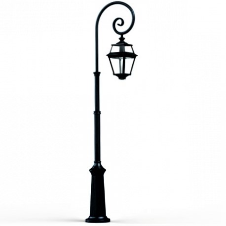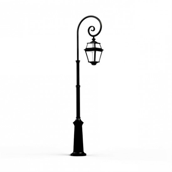 Die nostalgische Standleuchte mit Bischofsstab ist eine besonders transparente Gartenbeleuchtung mit hängender Laterne. Acht trapezförmige Glaseinsätze auf zwei Ebenen sorgen für die entsprechende Lichtdurchlässigkeit und Transparenz der authentischen Außenbeleuchtung. Die Outdoor-Stehleuchte ist hochwertig verarbeitet und von ihren Maßen 233,2 cm hoch, 26,3 cm breit und 62,6 cm tief. Der Leuchtenmast wird aus Stahl gefertigt. Die Leuchtenhaube besteht bei der nostalgischen Standleuchte mit Bischofsstab aus Aluminium. Bei der exklusiven Außenbeleuchtung aus der Leuchtenserie Vogese II stehen Ihnen je nach Geschmack und örtlichen Vorgaben bis zu 6 verschiedene Farben/RAL-Farben zur Verfügung. Damit lässt sich die dekorative Garten-Mastleuchte in vielen Bereichen und Farbumgebungen perfekt integriert platzieren. Wählen Sie bei der vierseitigen Laternenleuchte zwischen tiefschwarz (RAL 9005), weiß, alt-rustikal (braun), grün-Patina oder gold-Patina. Die stilvolle Mastleuchte wird auch mit einem edlen Messing-Finish angeboten. Hierbei dient schwarz lackiertes Aluminium als Basismaterial, auf das eine Messing-Patina gelegt wird, um den Messing-Finish-Effekt zu erzeugen. Der französische Hersteller gibt ab Werk auf das beschichtete Aluminium eine 25-jährige Anti-Korrosionsgarantie*. Die acht Fenstereinsätze werden aus Echtglas/ Klarglas gefertigt.