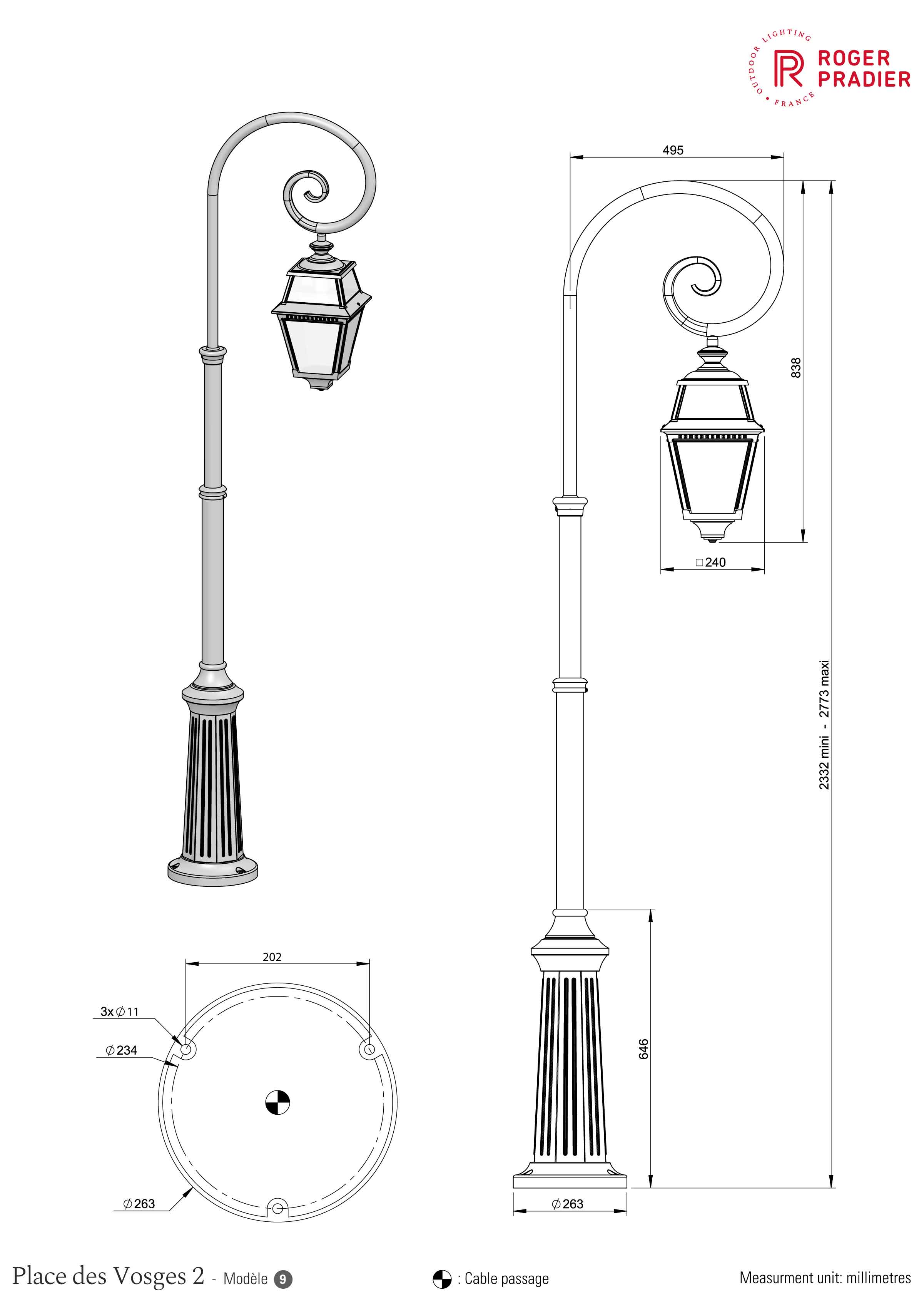 Alle Leuchten des Herstellers Roger Pradier verlassen die Manufaktur mit einer zusätzlichen technischen Garantie von 3 Jahren. Weitere Leuchtenarten wie verschiedene Wandleuchten, Sockelleuchten, Wegeleuchten, Mastleuchten sowie auch ein dreiflammiger Kandelaber runden das Leuchtensortiment der Modellserie Vogese II ab. Befestigungsmaterial ist bei Lieferung der nostalgischen Standleuchte mit Bischofsstab inklusive. Der rundförmige Sockelboden ist im Durchmesser 26,3 Zentimeter groß. Wir empfehlen Ihnen dazu passend zum Beispiel als Hauseingangsbeleuchtung an Decken auch die Design Aussenleuchte hängend.