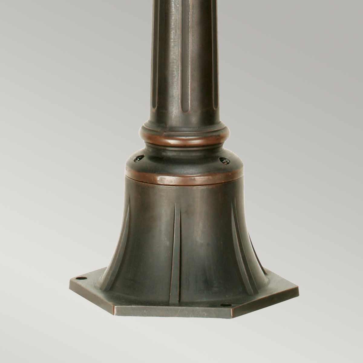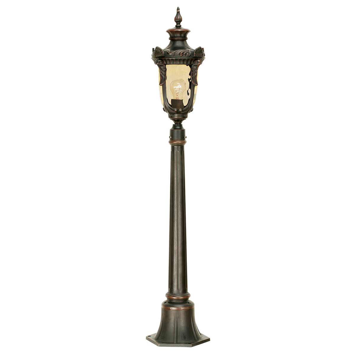 Die nostalgische Wegeleuchte 117cm gehört zu unserer Leuchtenserie Philadelphia und überzeugt mit einem ausdrucksstarkem Design mit nostalgischem Flair.. Die stilistisch verspielte Gartenlaterne ist nicht nur eine Beleuchtungslösung, sondern mit einer Patina aus alter Bronze auch ein beeindruckendes Dekorationsstück für Ihren Garten und Vorgarten. Setzen Sie mit dieser stilvollen Gartenbeleuchtung dekorative Lichtakzente an Ihren Wegen und Zuwegen oder auch im Vorgarten oder im Parkplatzbereich. Die Außenleuchte ist 116,5 cm hoch und 19 cm breit. Ein Highlight ist dabei auch die mundgeblasene bernsteinfarbene Glashaube. Die im Design nostalgische Wegeleuchte wirkt klassisch und antik zugleich-mit einem Hauch von Vintage-Design. Das Alt-Bronze Finish verleiht der nostalgischen Wegeleuchte einen charmanten Vintage-Look, der eine nostalgische Atmosphäre schafft und gleichzeitig zeitlos elegant wirkt. Die rundförmige Laternenhaube sorgt für eine gleichmäßige und umlaufende Lichtverteilung. Das Licht wirkt dabei durch das bernsteinfarbene Glas besonders stimmungsvoll. Die E27-Lampenfassung wird mit Leuchtmitteln bis maximal 100 Watt bestückt. Die Lieferung erfolgt ohne Leuchtmittel. Wir empfehlen für die Laternenleuchte die Verwendung von energieeffizienten LED-Leuchtmitteln. Sogenannte Retro-Leuchtmittel mit rundem Glaskörper unterstreichen nochmals das klassisch antike Design der nostalgischen Gartenlaterne. Die Leuchtenserie bietet weitere Leuchtenarten im gleichen Design. Neben verschiedenen Wandleuchten sind auch eine Sockelleuchte oder Mastleuchte vom englischen Hersteller dazu passend abgestimmt erhältlich. Mit der Schutzart IP 44 kann die wetterfeste Außenleuchte Philadelphia bedenkenlos als Beleuchtung im Freien eingesetzt werden. Das Nettogewicht beträgt 3,51 kg. Sie erhalten vom englischen Hersteller eine 3-jährige Antikorrosions-Garantie. Die nostalgische Wegeleuchte 117cm wird aus hochwertigen Materialien hergestellt und ist nicht nur optisch ein Hingucker, sondern auch langlebig und wetterbeständig. Erwecken Sie Ihren Außenbereich zum Leben und verleihen Sie ihm einen Hauch von beeindruckender Nostalgie! Alternativ empfehlen wir Ihnen auch unsere antike Wegeleuchte Kaprun mit einer Gesamthöhe von 140 Zentimetern.