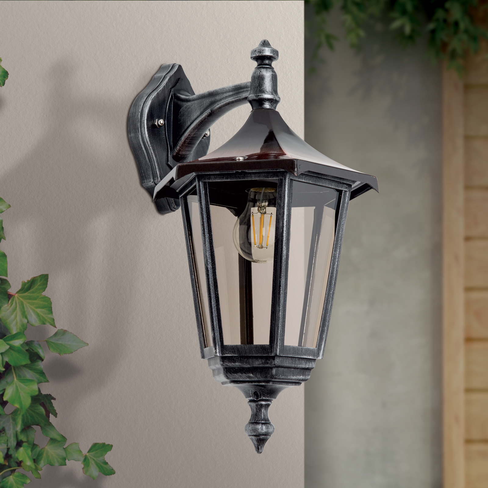 Die rustikale Aussenleuchte Wand ist ein schöner Hingucker für die Fassade Ihrer Immobilie. Ihr klassisch- rustikales Design ist nicht nur ein wunderbarer Blickfang, sondern lässt sich durch ihre zeitlose Erscheinung perfekt mit Baustilen oder Gartengestaltungen jeder Art kombinieren. Die Laterne ist in ihren Grundzügen schwarzsilberfarben und glänzt mit einem dekorativen Kupferdach. Darin eingefasst sind klare Rauchglaselemente, hinter denen das Leuchtmittel in Szene gesetzt wird.