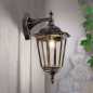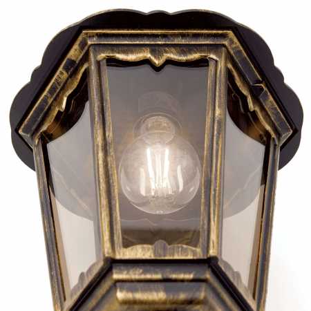 Stilvolle Qualität aus Österreich. Setzen Sie die sechsseitige rustikale Wandleuchte Kaprun mit festem Wandarm als Blickfang im Hauseingang, als dekorative Terrassenbeleuchtung oder auch als stilvolle Außenbeleuchtung an Nebengelassen als dekorative Lichtquelle ein. Das rustikal-antike Flair entsteht bei der Außenleuchte durch die Verwendung der Farben Schwarz und Gold und die verspielten Verzierungen an der Laterne. Die dekorative Außenleuchte ist von den Maßen 22 cm breit, 45 cm hoch und 28 cm tief. Die Außenwandleuchte hat ein Eigengewicht von 2,3 kg. Die stilvolle Outdoor-Wandlampe wird aus Siluminguss hergestellt, einer besonders widerstandsfähigen Aluminiumgusslegierung aus Aluguss in Verbindung mit Silicium. Silicium wird z.B. aufgrund seiner guten Materialeigenschaften auch im Flugzeugbau verwendet. Die sechs Fenstereinsätze bestehen bei dieser Wandleuchte aus Rauchglas. Rauchglas erfreute sich bereits in den 60-iger Jahren großer Beliebtheit und war damals aus der Glas- und Leuchtenwelt nicht wegzudenken. Die antik-rustikale Wandleuchte eignet sich auch sehr gut als Gastronomiebeleuchtung. Die stilvolle Außenwandleuchte wird mit einer E 27-Lampenfassung geliefert. Sie bestücken die Wand-Außenleuchte mit Leuchtmitteln bis 100 Watt Leistung. Wir empfehlen zur Bestückung ökonomische LED-Leuchtmittel oder ebenso energieeffiziente Energiesparlampen. Aus optischen Gründen bieten sich bei der stilvollen Wandlampe zur Verwendung auch moderne Retrolampen mit kugelförmigen Glaskörper an. Leuchtmittel sind bei Lieferung nicht enthalten. Die dekorative Wandleuchte Kaprun mit abwärts gerichteter Laterne stammt von unserem österreichischen Hersteller Orion-Leuchten. Die Leuchte entspricht der Schutzklasse 1. Die rustikale Wandleuchte eignet sich mit der Schutzart IP 43 gut für den Außenbereich, sollte aber etwas wettergeschützt, z.B. unter einem Dachkasten, als Lichtquelle eingesetzt werden.