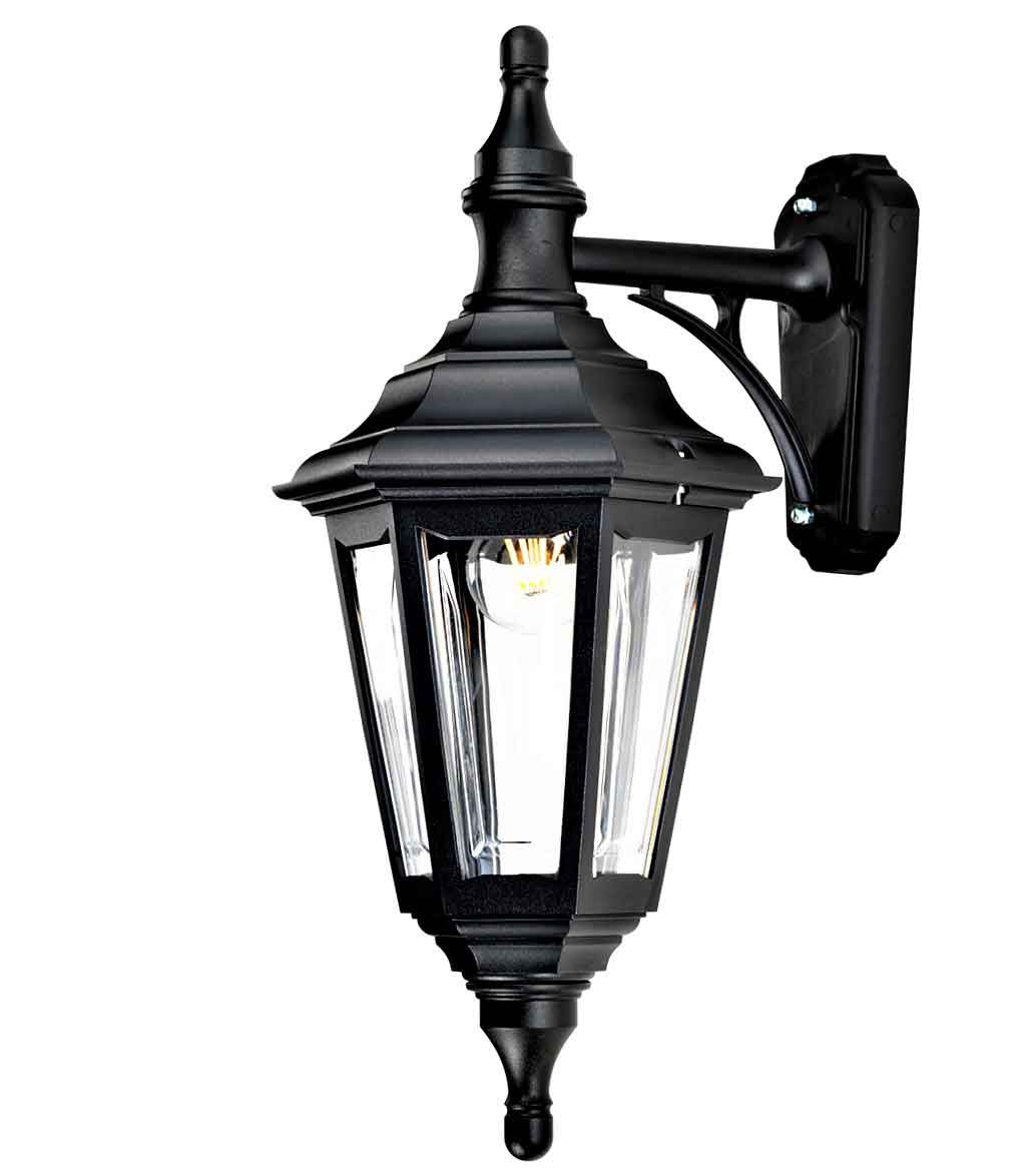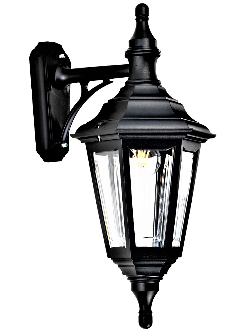Wandleuchten im antik-rustikalem Design oder im Landhausstil erfreuen sich immer größerer Beliebtheit. Die rustikale Wandleuchte schwarz gehört zu unserer Modellserie Kinsale und wird aus robustem Polymer gefertigt. Die laternenförmige Außenleuchte ist an einem dazu stilistisch passendem Wandarm befestigt, der ebenfalls aus Polymer gefertigt wird. Die Wandmontage kann bei dieser Außenwandleuchte sowohl aufwärts stehend als auch mit nach unten gerichtetem gerichteten Leuchtenkorpus erfolgen. Sie entscheiden, welche Richtung für Sie besser passt. Dafür wird die Wandmanschette lediglich entsprechend der bevorzugten Richtung befestigt. Die sechsseitige Laterne zeigt sich in einem antik-rustikalem Design. Die Fenstereinsätze bestehen aus witterungsresistentem Polycarbonat, einem sehr robustem und UV-beständigem Kunststoff. Die Außenwandleuchte Kinsale wird in Italien hergestellt. Die stilvolle Außenbeleuchtung ist von ihren Maßen 46 cm hoch, 23 cm breit und hat insgesamt einen Wandabstand von 27 cm. Die Leuchtenserie bietet zur Ergänzung für eine einheitliche Lichtgestaltung Ihres Außenbereichs diverse weitere Leuchtenarten an. Neben einer Sockelleuchte, Wegeleuchte, Mastleuchte bietet die Leuchtenserie auch eine Hängeleuchte mit Kette zur Deckenbefestigung an.