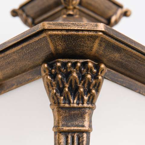 Die klassisch-nostalgische Optik entsteht bei der schönen Außenwandleuchte für Restaurant durch verschiedenen Verzierungen und die klassische Laternenform. Die antik-messingfarbene Wandlaterne ist Teil unserer Außenleuchtenserie Bregenz. Charakteristisch ist für diese Leuchtenserie ihr Schmiede-Designs mit filigranen Zierelementen und kannelierter Montur. Die viereckige Laterne wird von einem ebenso verziertem geschwungenem Wandarm getragen. Eine einbrennlackierte, handgewischte Patinafarbe veredelt den Siluminguss, der besonders korrosionsbeständig ist und verleiht ihr ein antikes Aussehen. Die schöne Außenwandleuchte für Restaurant ist mit weiß satiniertem Echtglas versehen und zeigt sich hier klassisch elegant mit aufragender Laterne, die auf einer dekorativen Montageplatte montiert ist. Das satinierte Glas bewirkt dazu eine absolut blendfreie Außenbeleuchtung. Mit einer Höhe von knapp einem halben Meter eignet sie sich für den Einsatz repräsentativer Eingänge und Terrassen. Setzen Sie Ihren Hauseingangsbereich stilvoll in Szene. Die schöne Außenwandleuchte für Restaurant ist hierbei 47 cm hoch, 23 cm breit und 29 cm tief. Die satinierte Wandlaterne Bregenz hat eine E27-Fassung mit einer maximalen Leistung von 60 Watt. Je nach Bestimmungsort und Erforderlichkeit wählen Sie die für Sie passenden Leuchtmittel. Ob LED-Leuchtmittel oder auch Energiesparlampe, ob warmweißes Licht für eine stimmungsvolle Beleuchtung oder lieber eher kaltweißes Licht (höhere Kelvinzahl) für mehr Helligkeit, Sie bestimmen mit der Leuchtmittelwahl die Lichtwirkung Ihrer neuen Außenbeleuchtung. Leuchtmittel sind bei der Lieferung daher nicht enthalten. Die antik rustikale Wandlampe Bregenz sollte mit der Schutzart IP 23 eher an etwas geschützteren Orten angebracht werden, zum Beispiel als Beleuchtung im vorderen Hauseingangsbereich unter dem Dachkasten.