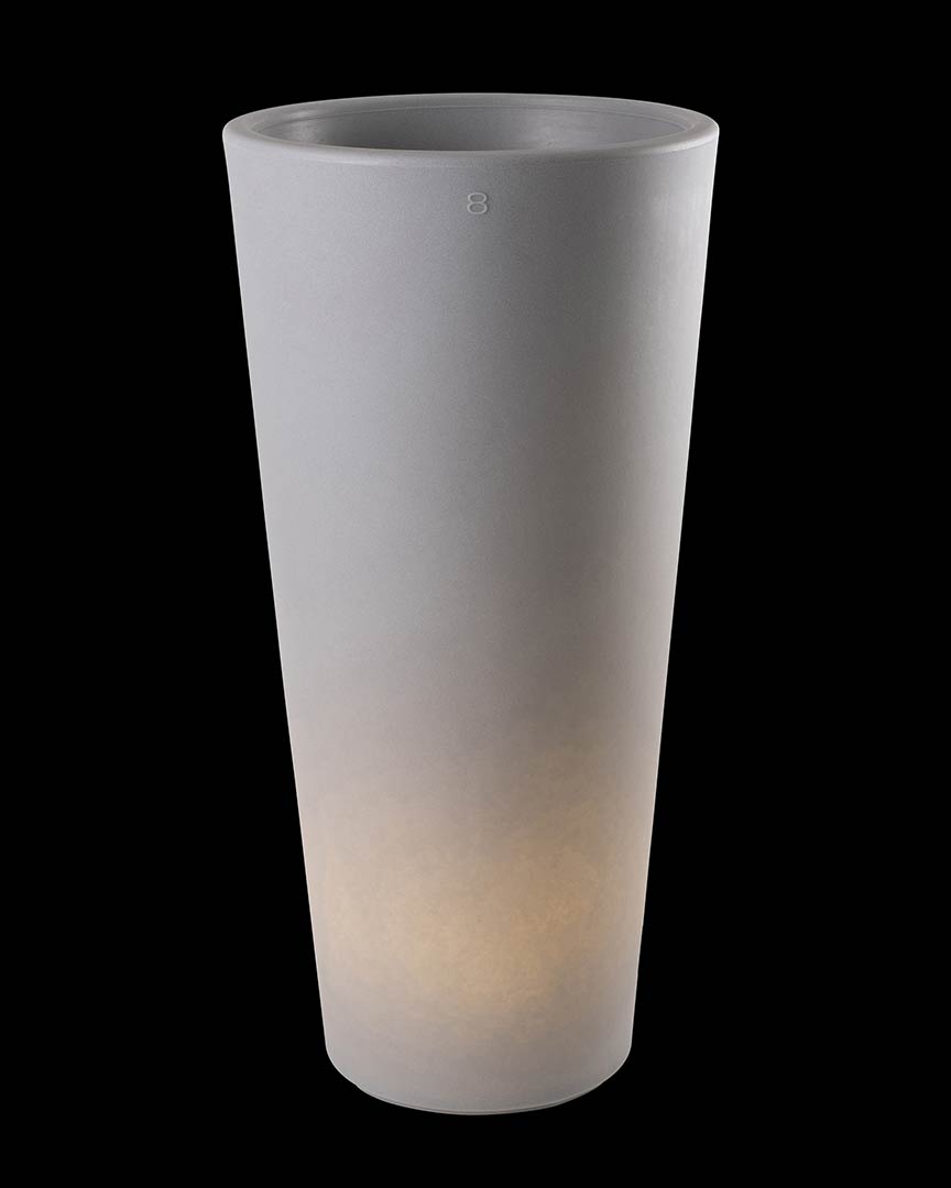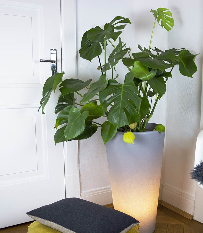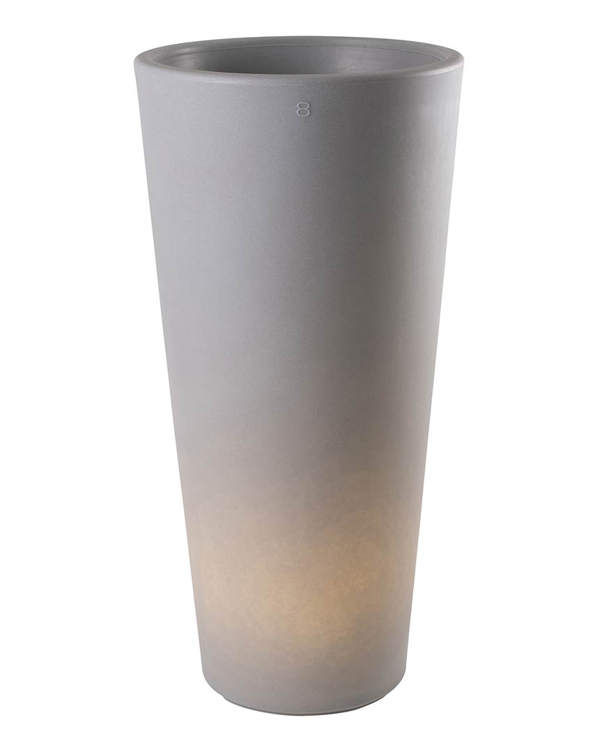 Die im modernen Design gehaltene stilvolle Aussenbeleuchtung in der Form eines Blumentopfes wirkt stilvoll und elegant zugleich. Lassen Sie Ihre Pflanzen im beleuchteten Blumenkübel auch mit aufkommender Dämmerung stilgerecht erstrahlen. Das beleuchtete Gefäß in der Farbe Grau dient praktisch als befüllbarer Blumentopf und dient gleichzeitig mit einer Lichtintensität von 800 Lumen als sanfte Lichtquelle. Der graue Pflanzenpott ist von seinen Maßen 100 cm hoch und 49 cm breit. Der wetterfeste Kübel wirkt dabei sowohl beleuchtet als auch unbeleuchtet und erzeugt mit einem warm-weißen Licht eine angenehme Wohlfühlatmosphäre. Der große 7 Kilogramm schwere Pflanztopf hat ein Volumen von 36 Litern. Die dekorative stilvolle Aussenbeleuchtung LED-Blumentopf überzeugt mit ihrer gradlinigen Form und wird aus besonders hochwertigem Polyethylen hergestellt. Das macht die LED-Außenleuchte für Draußen robust gegenüber Sonne, Regenwetter oder Frost. Die wetterfeste Gartenbeleuchtung wird in Deutschland hergestellt. Laufende Qualitätskontrollen sorgen bei der praktischen Gartenbeleuchtung für deren besondere Hochwertigkeit. Der deutsche Hersteller bindet bei der Herstellung der Outdoor-Standleuchte Behinderten-Werkstätten in den Produktionsprozeß mit ein und gibt auf die Leuchten ab Werk zwei Jahre Garantie. Die stilvolle Aussenbeleuchtung entspricht der Schutzart IP 44 und ist damit gut vor Spritzwasser geschützt. Die stilvolle Garten-und Terrassenbeleuchtung wird hier mit einer E-27-Lampenfassung angeboten. Die Lieferung erfolgt inklusive Leuchtmittel LED-Warmweiß (8 Watt) und inklusive 2,35 Meter Zuleitung mit Konturenstecker. Die dekorative Leuchte ist über den Lichtschalter dimmbar. Sollten Sie auf RGB für farbiges Licht "umsteigen" wollen, tauschen Sie einfach das Leuchtmittel entsprechend aus. Das mitgelieferte LED-Leuchtmittel in der Lichtfarbe Warm-weiß (2700 Kelvin) ist sehr langlebig (etwa 15.000 Brennstunden) und arbeitet zudem äußerst energieeffizient. Die maximale Wattzahl beträgt bei dem beleuchteten Pflanzkübel 12 Watt. Die Außenbeleuchtung kann selbstverständlich auch flexibel im Innenbereich genutzt werden.