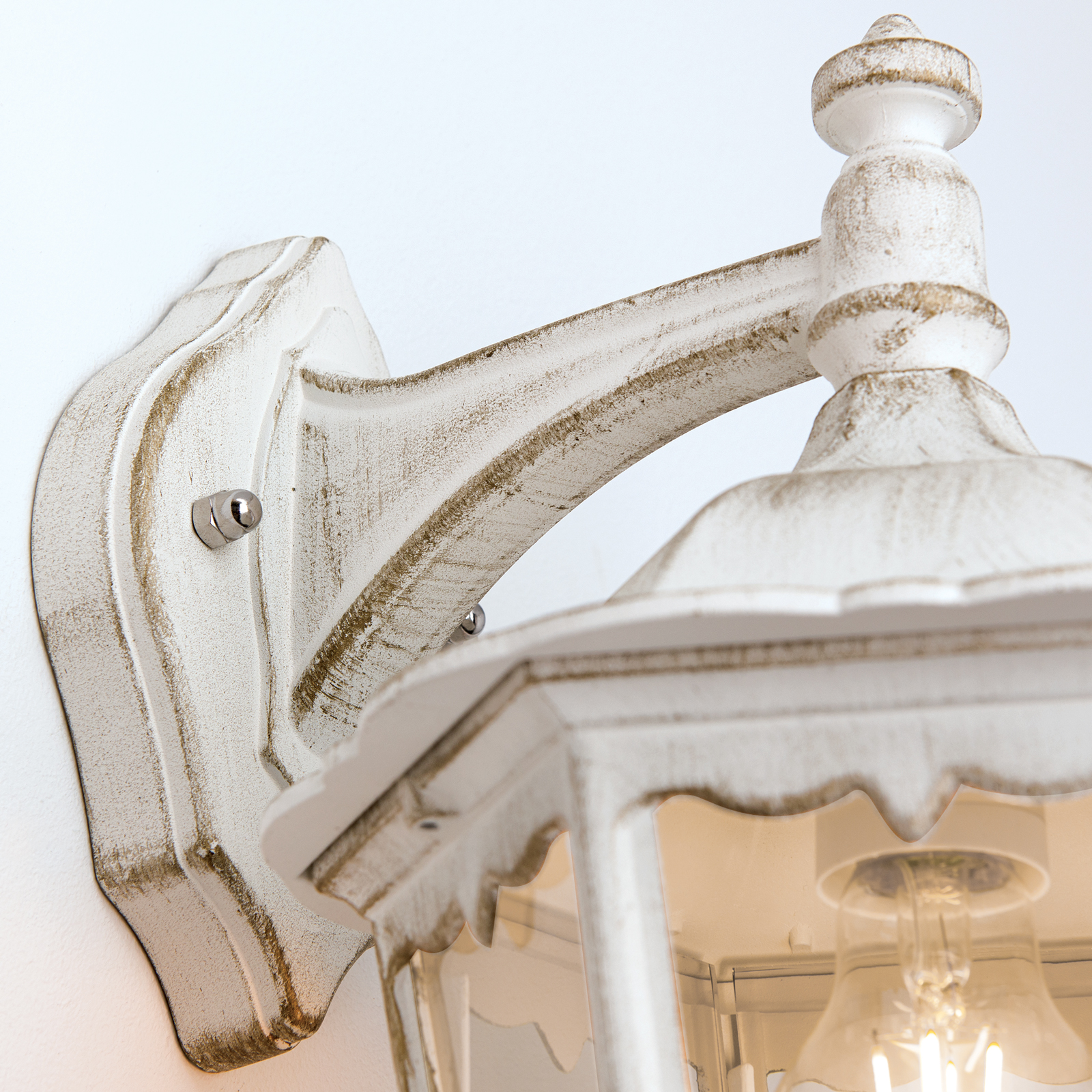 Die vom Design eher klassische und verspielte weiße Wandlaterne antik eignet sich mit der Schutzart IP 43 gut für den Außenbereich, sollte aber etwas wettergeschützt, z.B. unter einem Dachkasten, als Lichtquelle eingesetzt werden. Der österreichische Hersteller Orion-Leuchten gibt auf die Außenleuchte ab Werk 2 Jahre Garantie. Die Leuchte Graz ist nicht dimmbar. Leuchtmittel sind bei Lieferung nicht enthalten. Schauen Sie sich dazu als Alternative doch auch mal die Wandlaterne mit aufrechtem Leuchtenkorpus an. Klicken Sie dafür einfach auf den folgenden Link weiße Außenwandlampe antik.